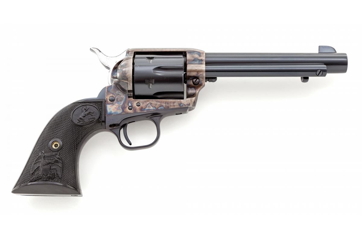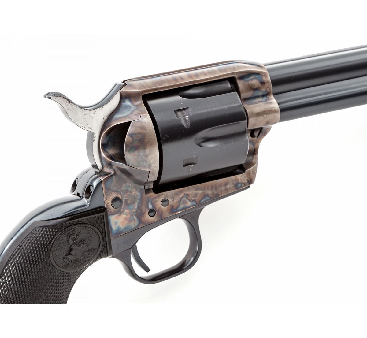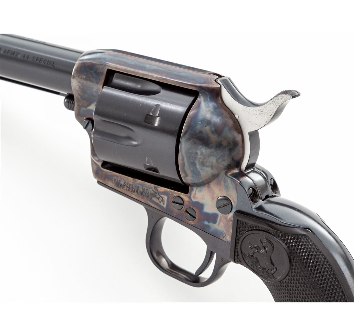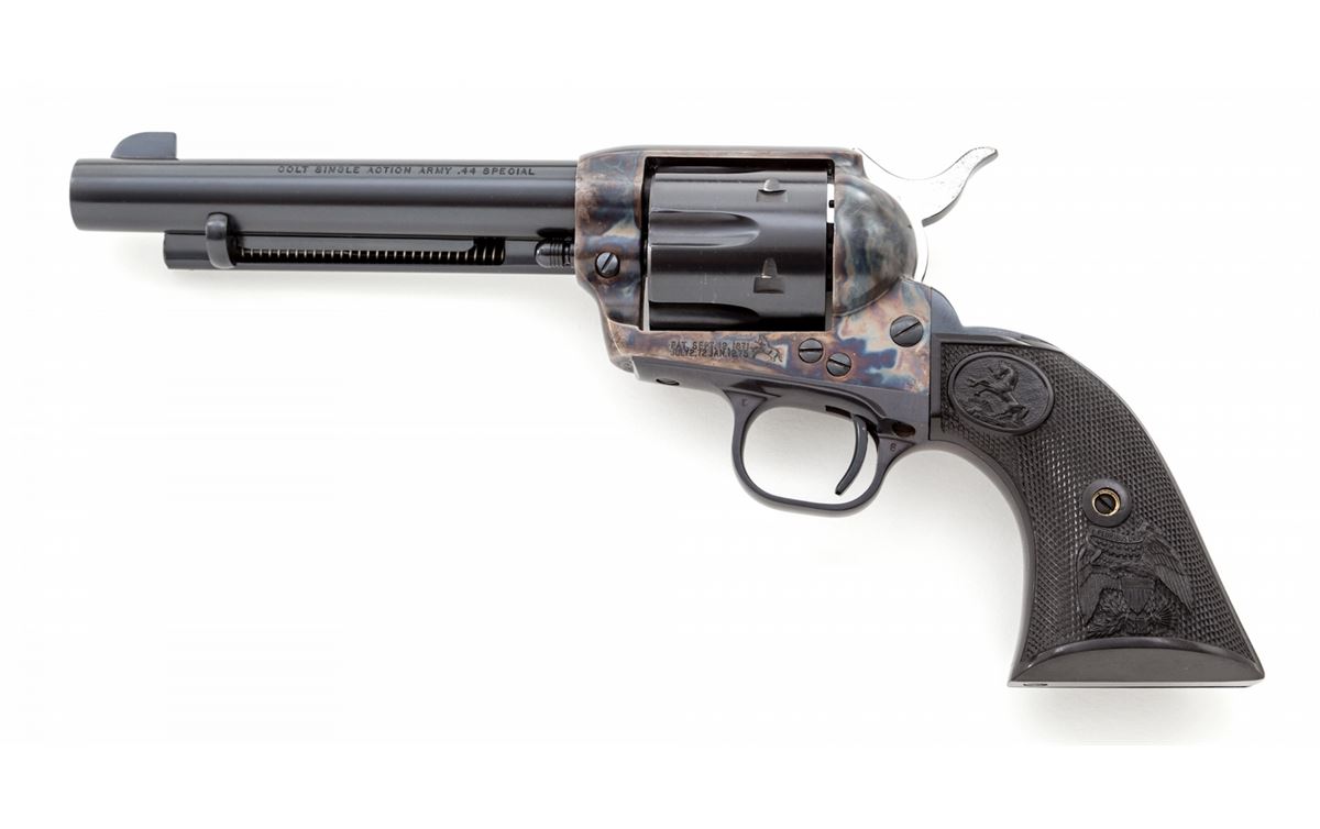 3rd Generation Colt Single Action Army Revolver, #SA64108, .44 Spec. cal., 5-1/2'' barrel, blue and case hardened finish, with American eagle black plastic checkered grips. Condition is excellent showing only the lightest marks from handling. In original box with instructions. Exterior of box is very good with minor wrinkling near flap. Est.: $1,000-$1,500. (C&R/PPT)
