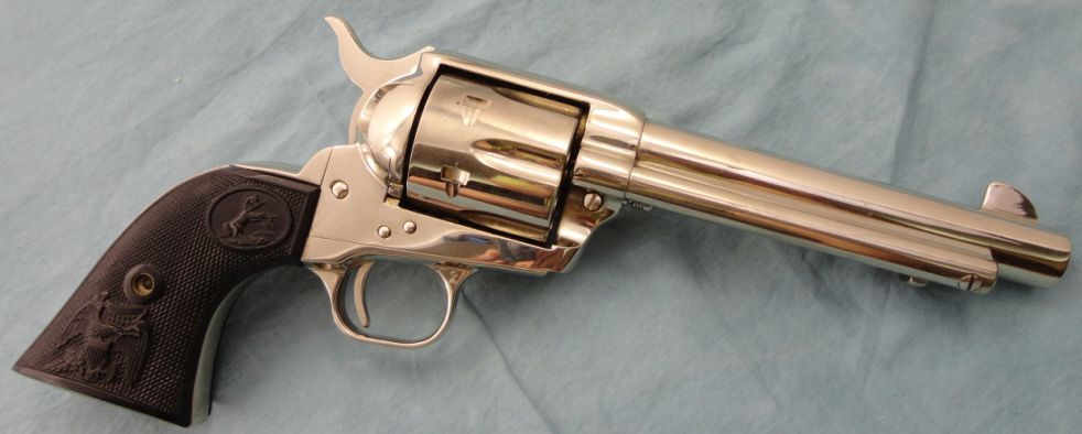 #SA28076; 44 Spc. 5 1/2" bbl. Nickel plated w/black plastic Colt Grips. Condition is very good overall w/only small marks from handling or light use.