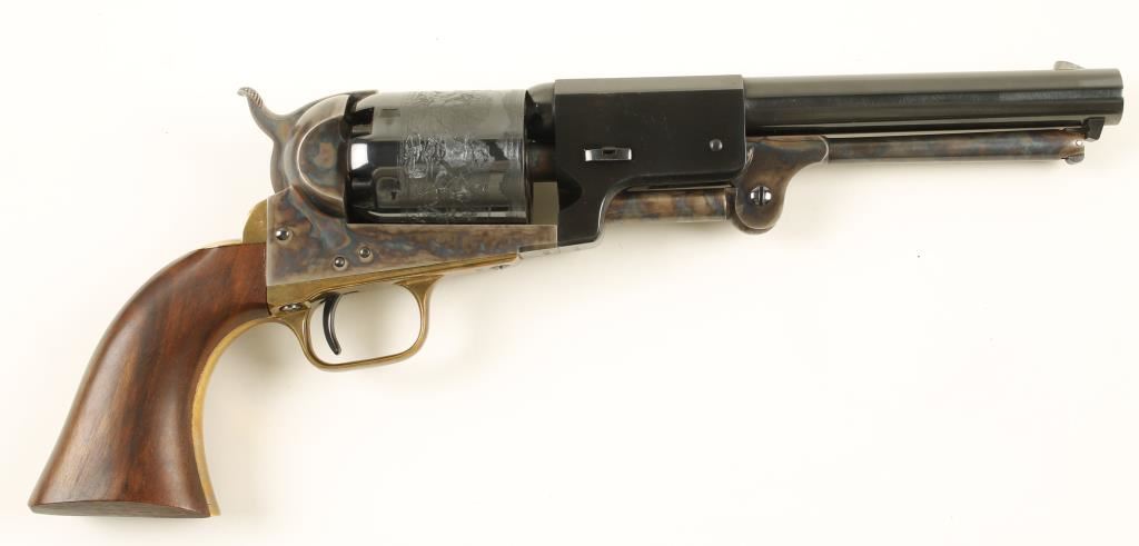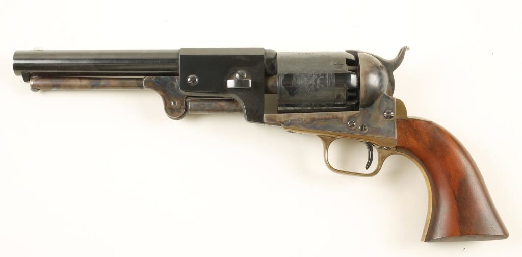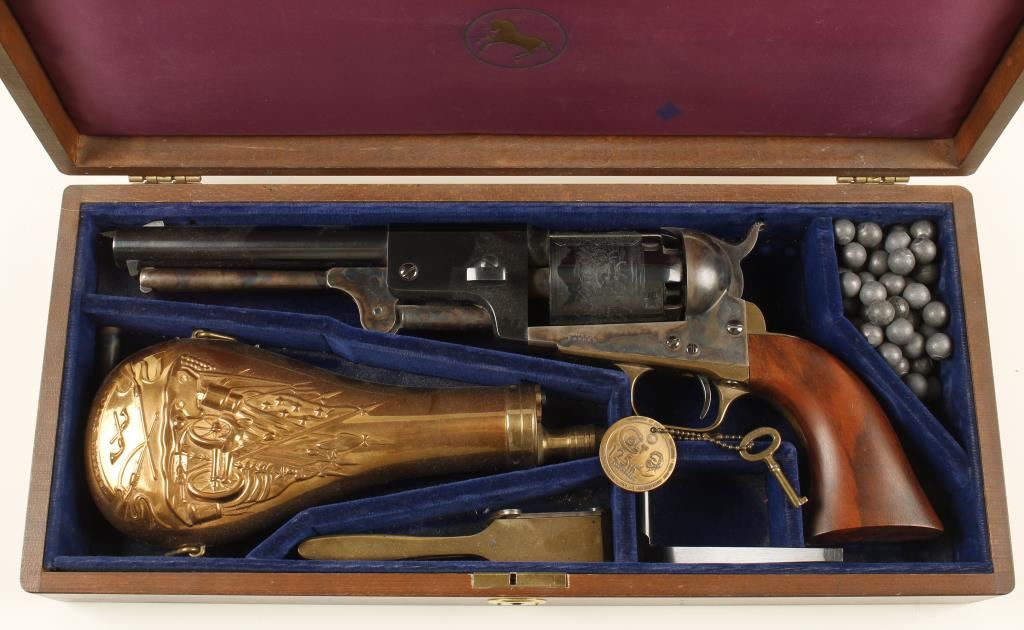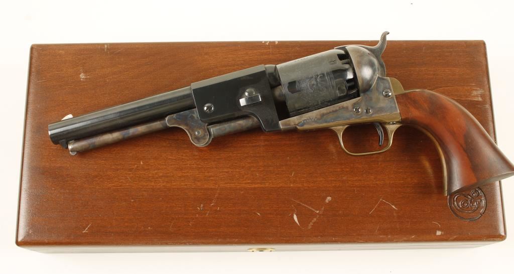 Colt New Black Powder Series 3rd Model Dragoon. In wooden Colt box with velvet lined partitions. Beautiful case hardened and blued black powder revolver. Includes powder flask, bullet mold, nipple wrench and lead balls. Overall in very good condition. ***Antique Firearm***