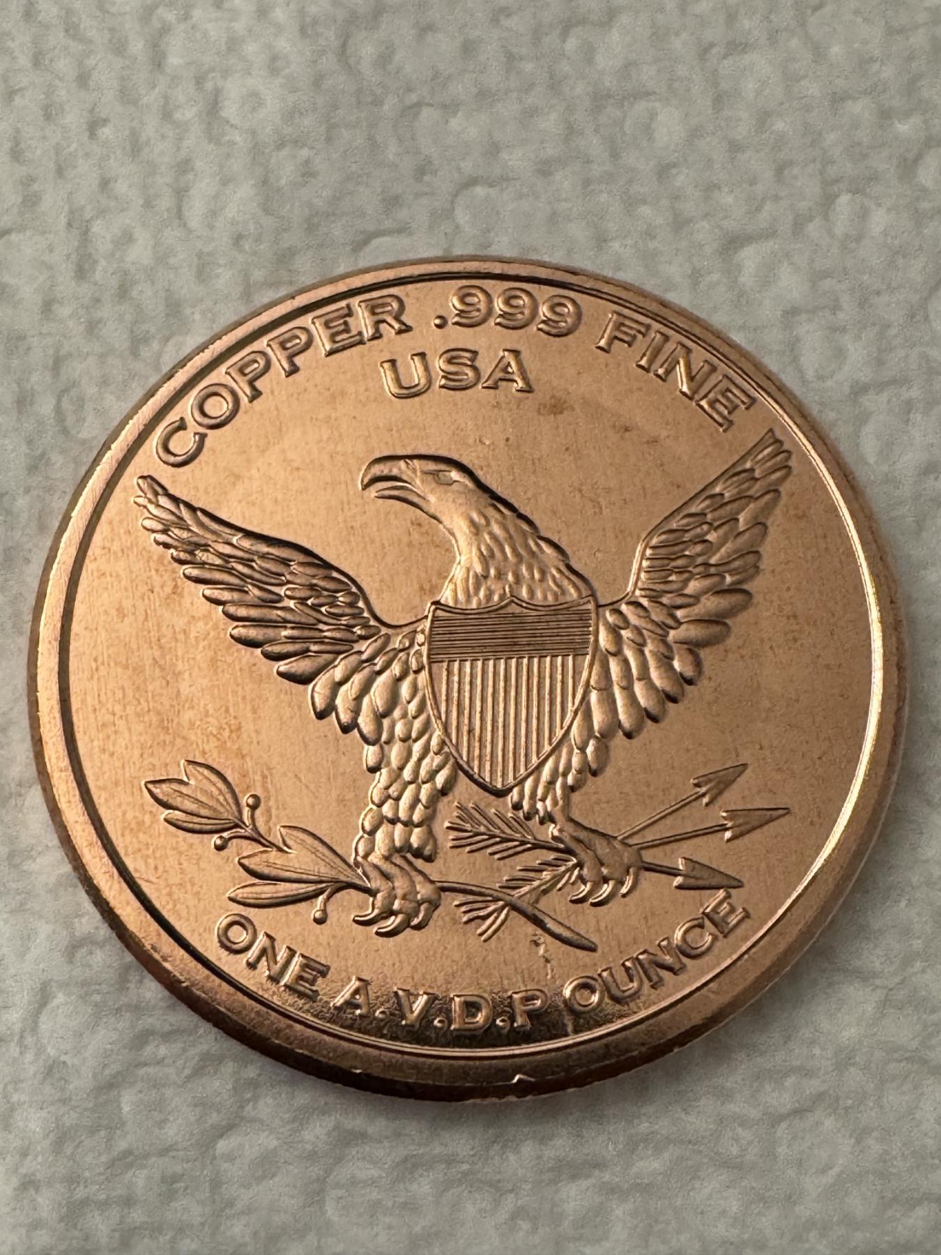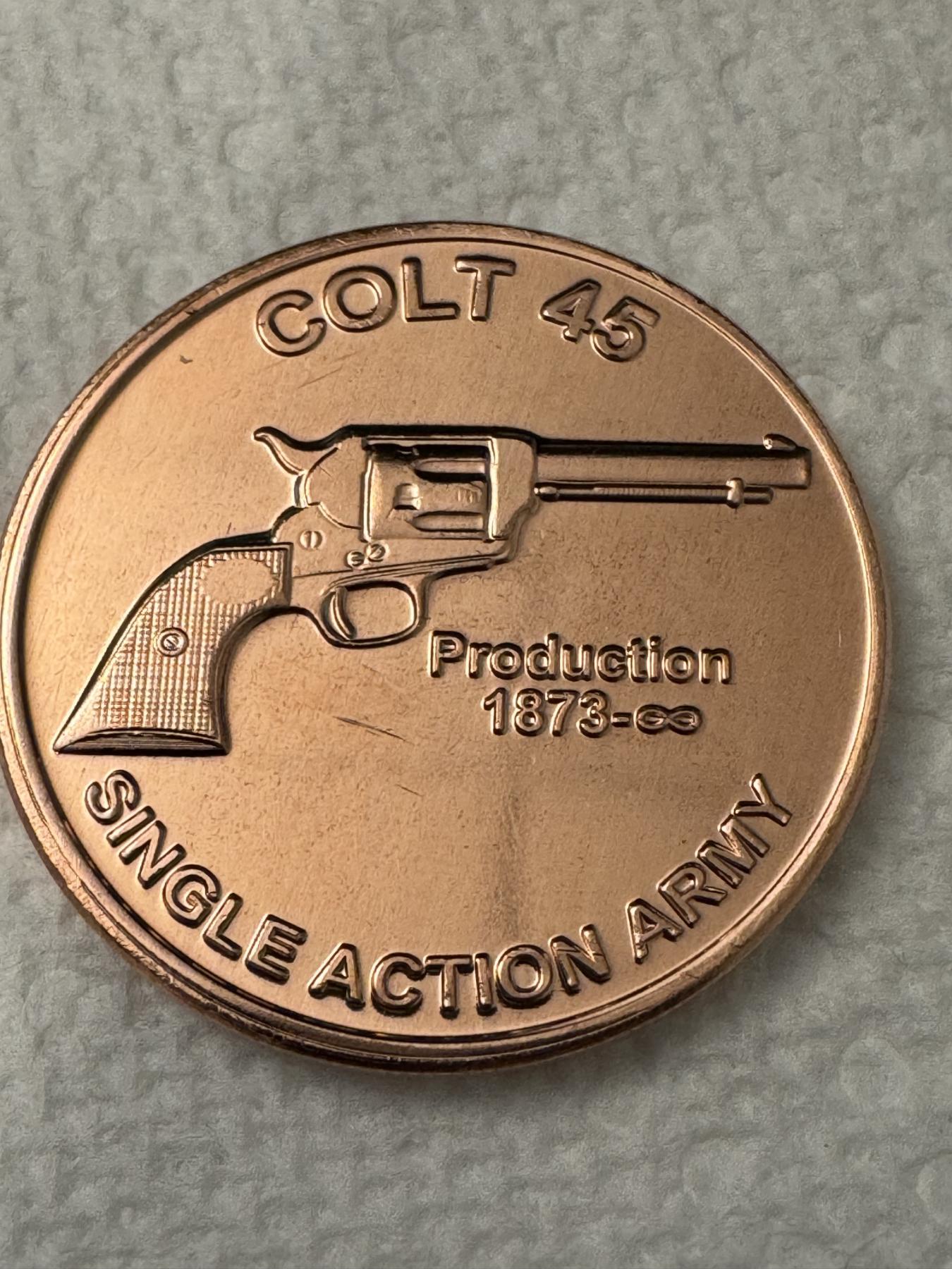 Colt 45 Single Action Army .999 Fine Copper Troy Ounce Coin - Mint Condition - Exceptional Coin