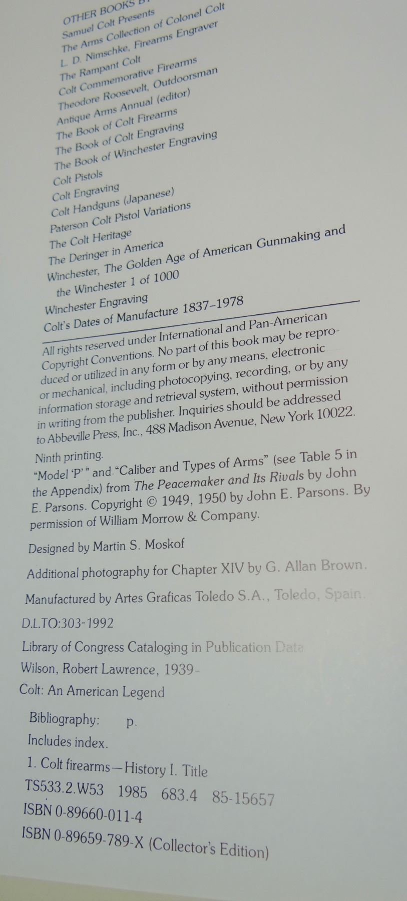 Colt, An American Legend, R. L. Wilson, hb, dj, small tear in dj, otherwise near fine