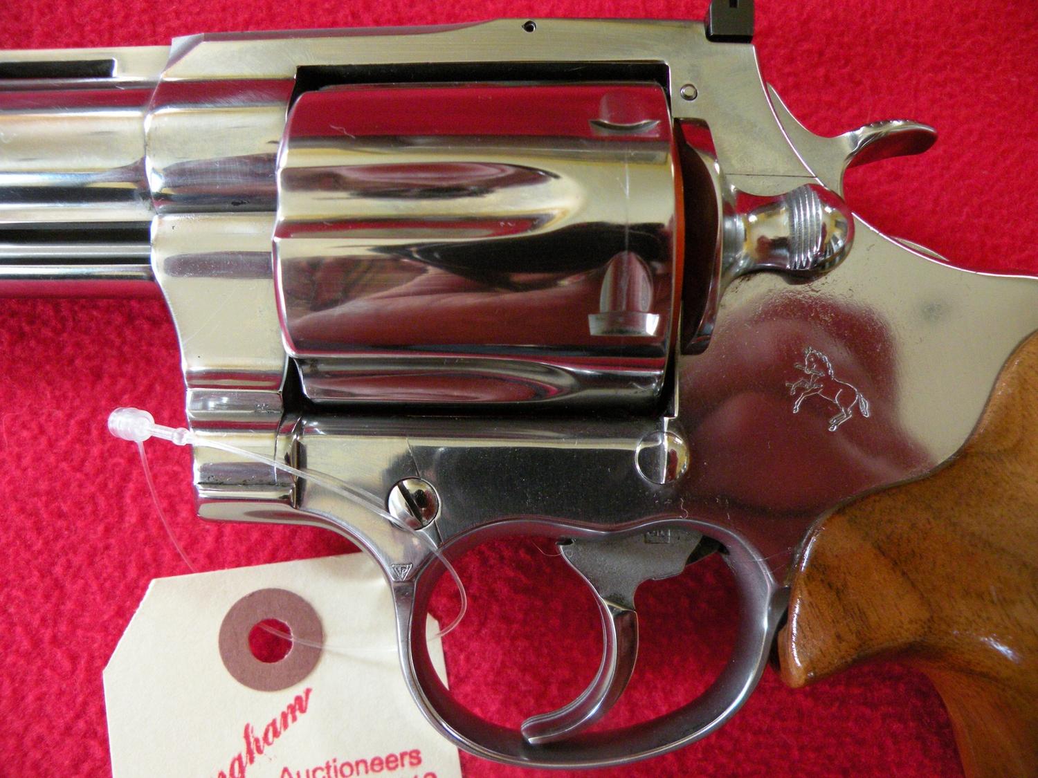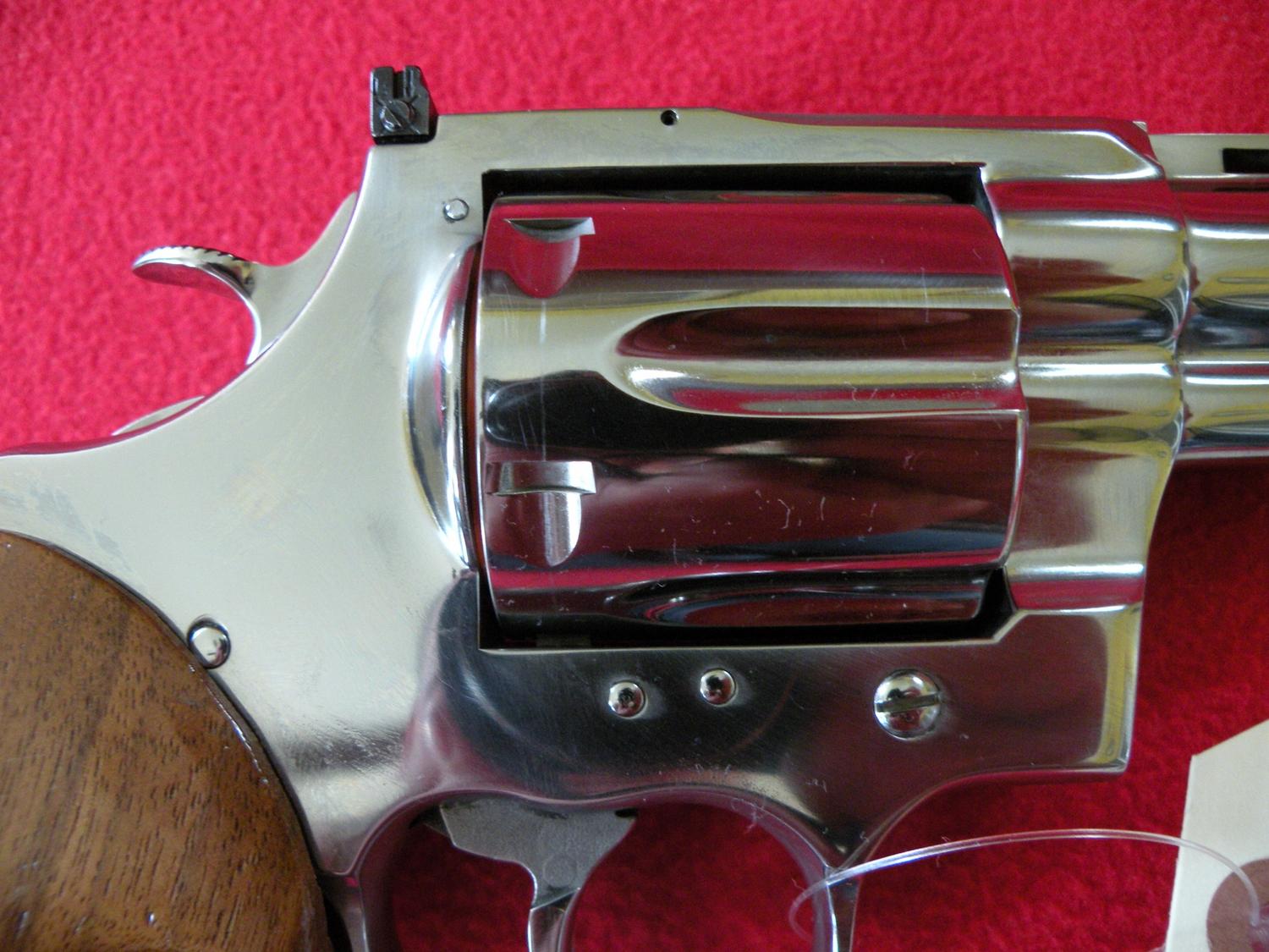 6" vent barrel, bright stainless finish, wood grips, white outline rear sight, red ramp front, In 1990 Colt made 1,000 1st run limited edition guns,a must have for Colt Snake collectors, SN mm0563