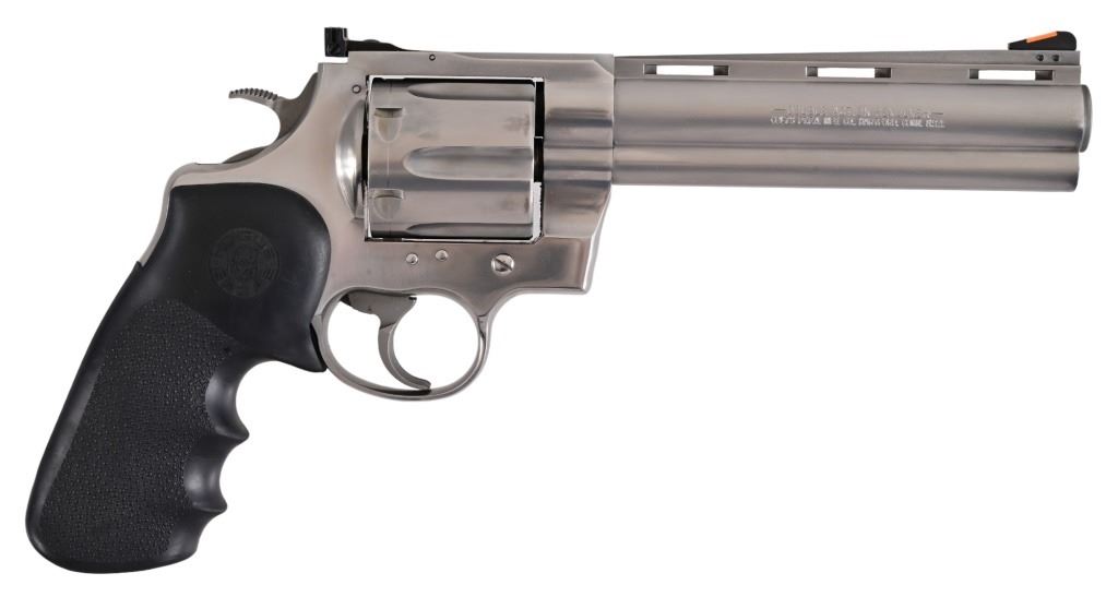 S/N MM49351. Rare .45 Colt very good condition in original case. Stainless finish, 6" Barrel, Rogue rubber target grips. Modern.