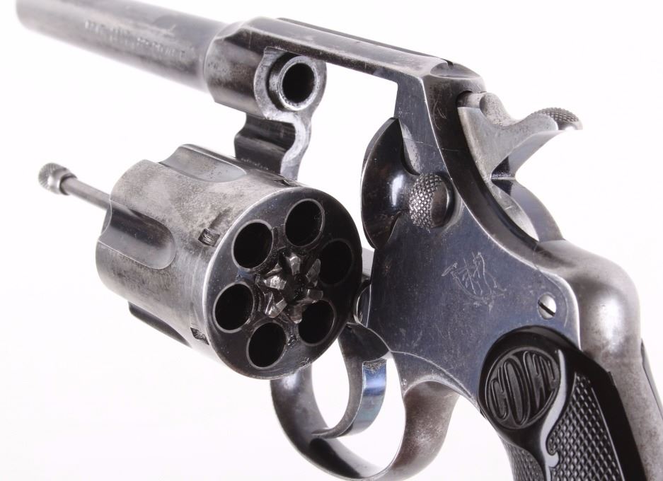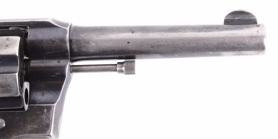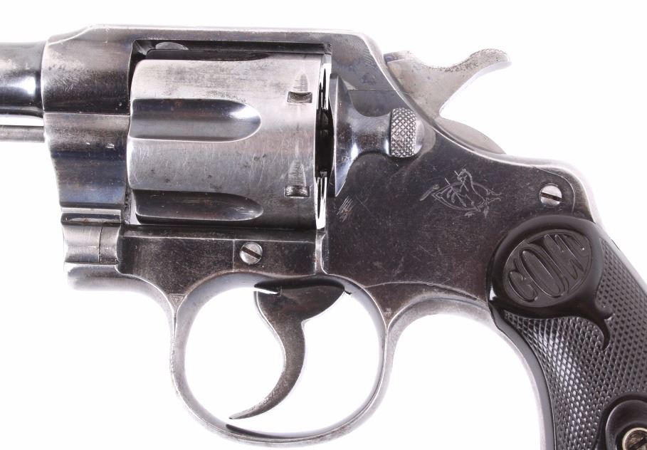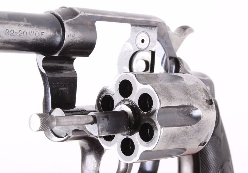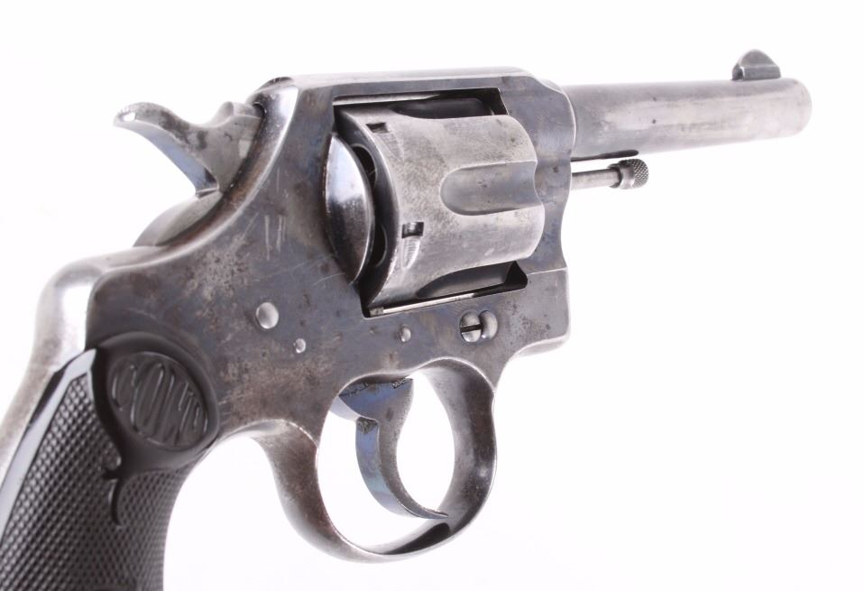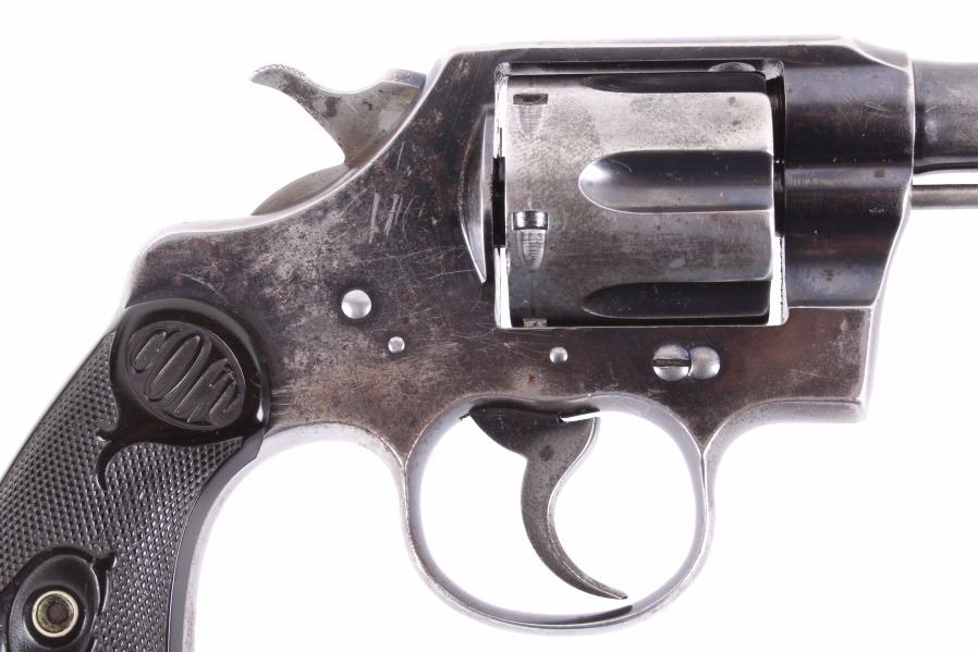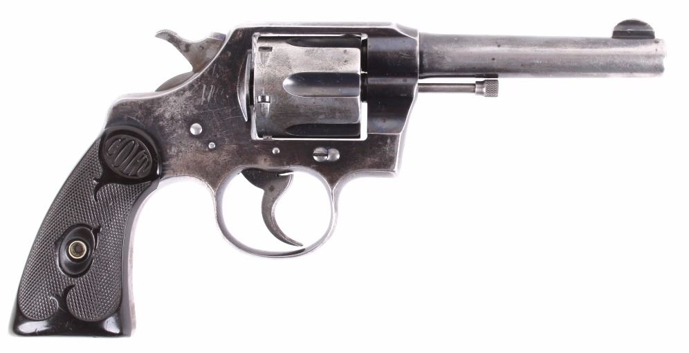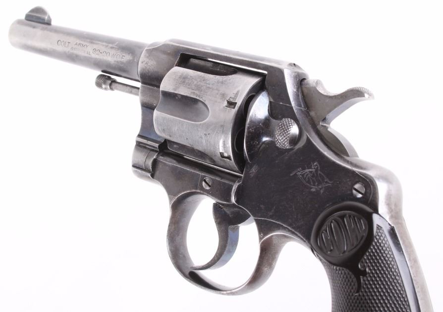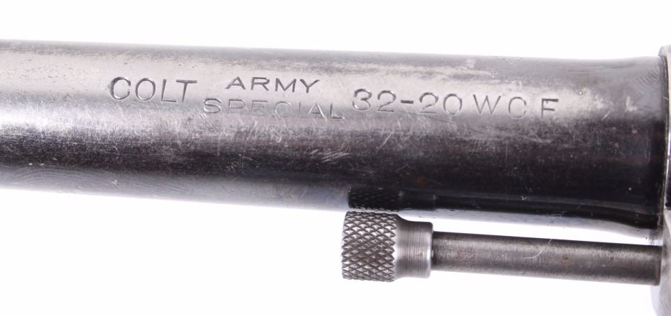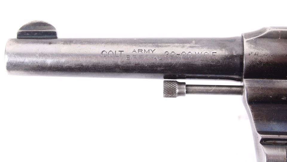 This is a fine example of a Colt Army Special 32-20 WCF 6 shot revolver. This revolver features a blued steel frame, six shot cylinder, 4 1/2" barrel, with double and single action. The Army Special was built on the medium frame size, and would be the basis of every medium framed Colt revolver made up to the Colt Python. Among the revolvers that were based on the Army Special were the Official Police, the various Officer's Model target revolvers, the original Trooper, and the Python. The Army Special/Official Police was made virtually unchanged from 1908 to 1969. This is a early model of the army special being made in 1910. The revolver is in good condition, showing a good amount of holster wear. It measures 10" L x 5 1/4" H x 1 5/8" W. Curio & Relic. FFL transfer or NICS background check required. Serial number is 323031