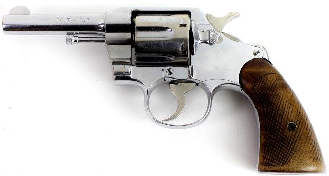revolver with renickled finish, 4" barrel and walnut grips. Very good action and bore. Modern. Est. 225-375