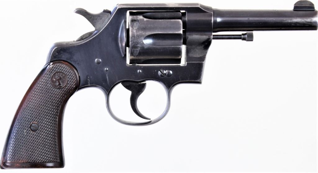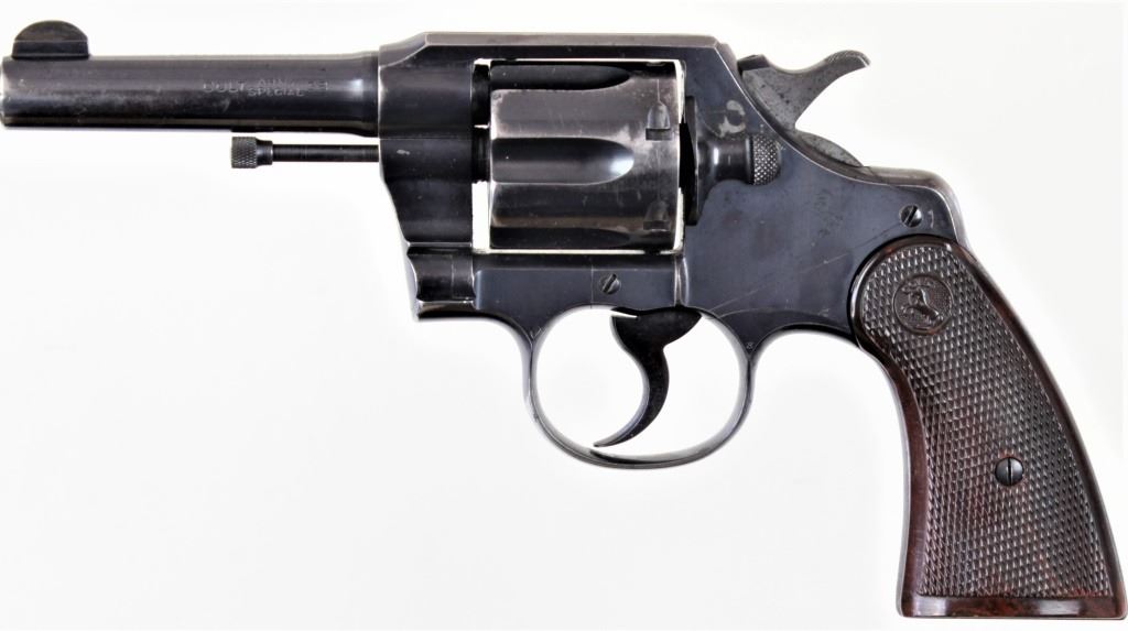 Colt Army Special .38 cal. SN 548048 double action revolver with 4" barrel blued finish and Colt hard rubber grips. Revolver remains in fair condition showing heavy holster wear to finish, grips are about fine. Action and bore both very good. De Accessidouble action revolver with 4" barrel blued finish and Colt hard rubber grips. Revolver remains in fair condition showing heavy holster wear to finish, grips are about fine. Action and bore both very good. De Accessioned from a state of AZMuseum. FFL / Modern. Est. 200-400