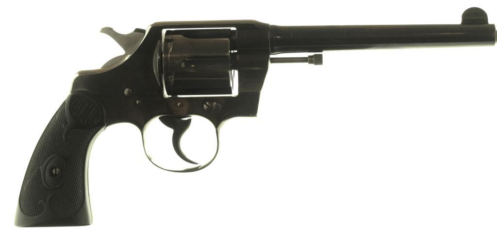 revolver 6" barrel blue finish and hard rubber checkered grips. Remains very good to near fine, only light muzzle edge and high point wear, cylinder shows thinning blue. Excellent action and bore. Mfg'd 1910, FFL required