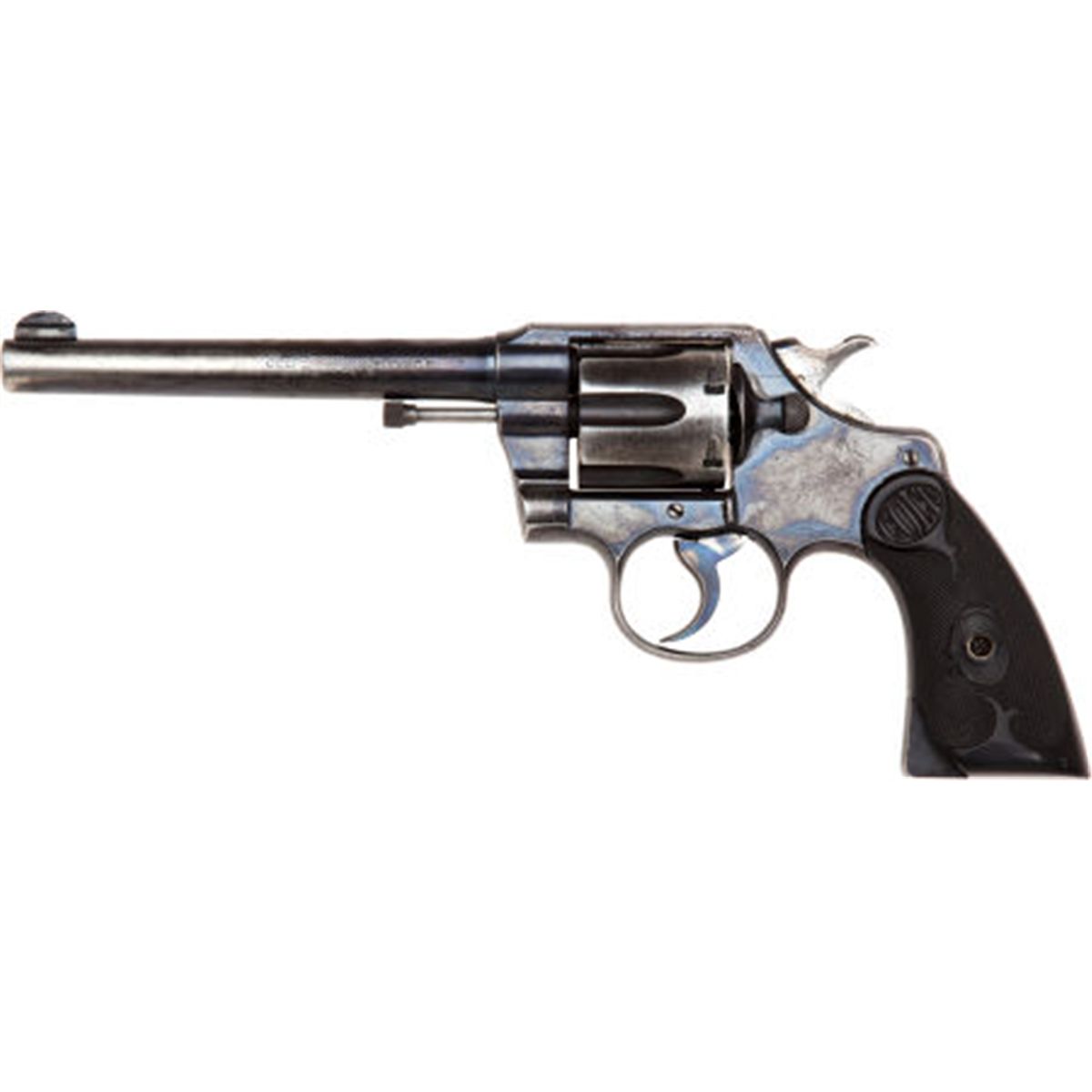 Colt Army Special Double Action Revolver. Serial no. 341105, .32-20 caliber, 6-inch barrel. Blued finish. Checkered, factory hard rubber grips. Condition: Fair to good. Retaining approximately 30-40% original blue finish, the balance a gray patina. Numerous scratches throughout. Both grip panels with large chips at toe. Bright bore showing moderate wear. NRA FIREARMS FOR FREEDOM PROGRAM