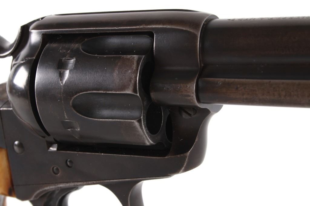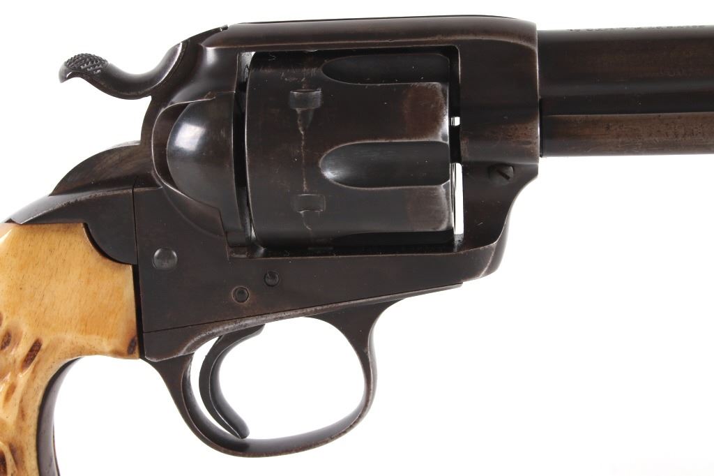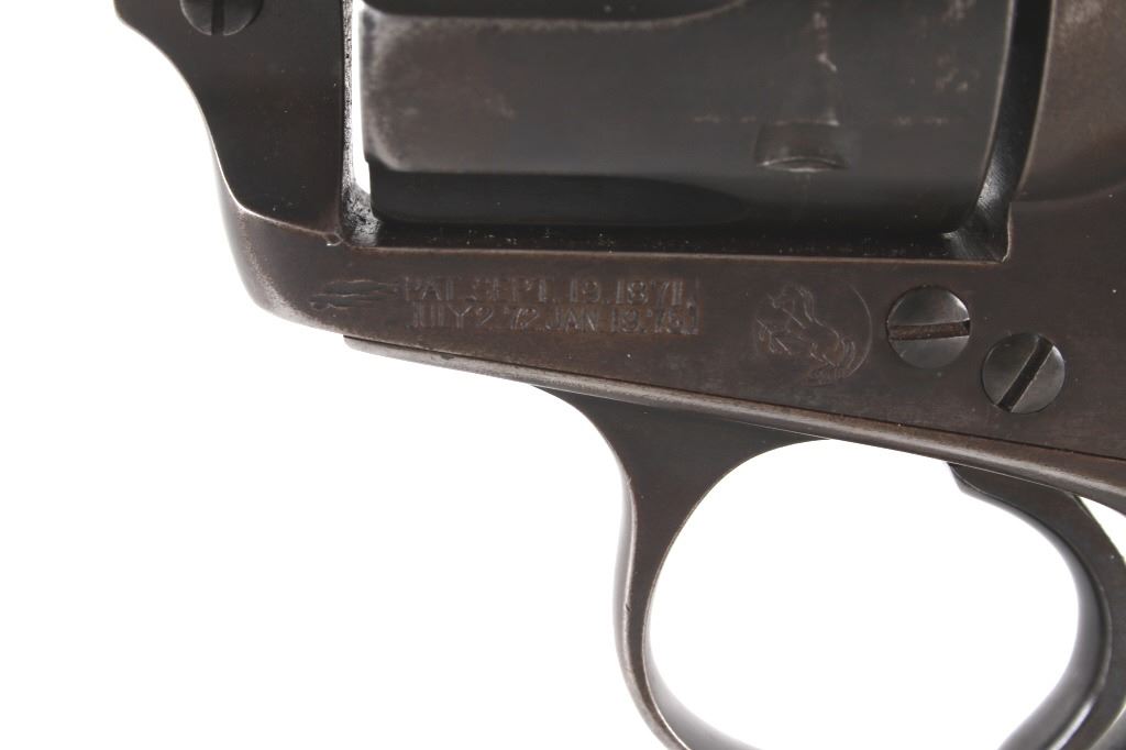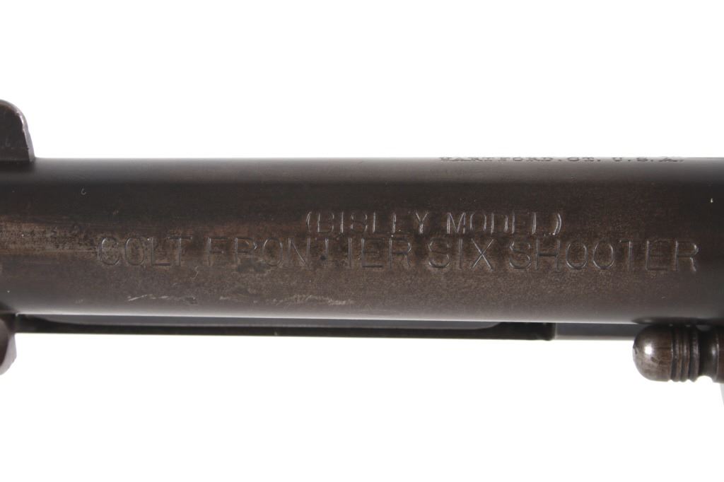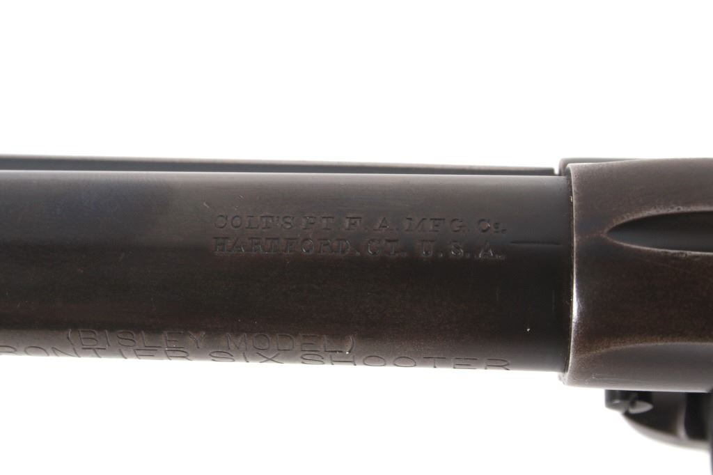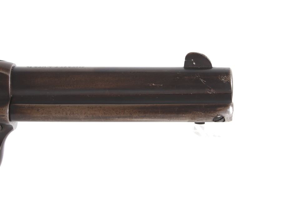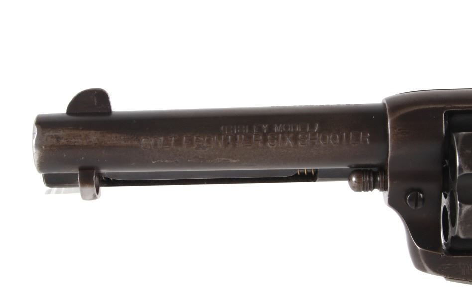 western frontier and is often seen in period photographs especially from the Southwest. An uncleaned example in this rare and desirable .44-40 caliber is a true treasure. A fine Colt in an exceptional state of preservation with a great deal of blue! The period stag grips also add to the attractive appearance of this Frontier Bisley! The revolver weighs 2lbs. 8oz. Serial Number: 254846. This firearm qualifies as a Curio & Relic firearm, and requires FFL Transfer or NICS Background Check.*