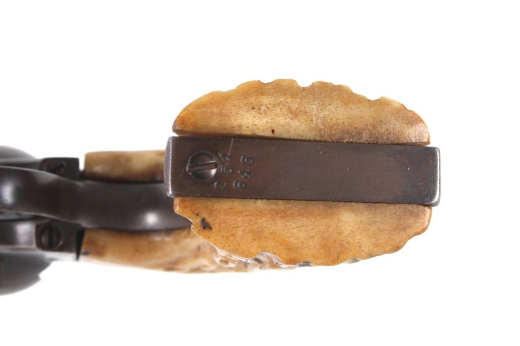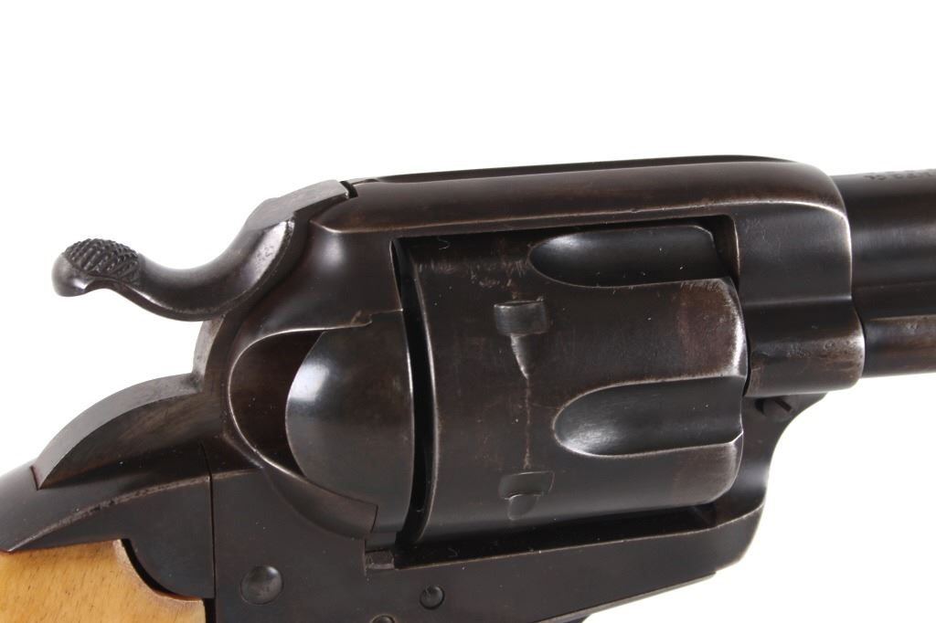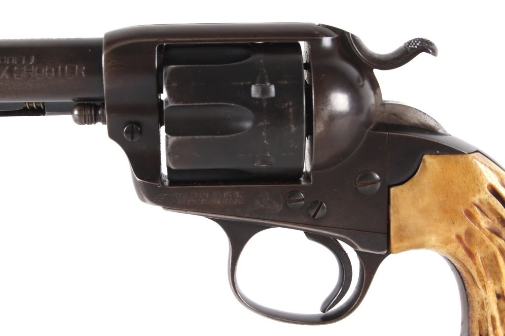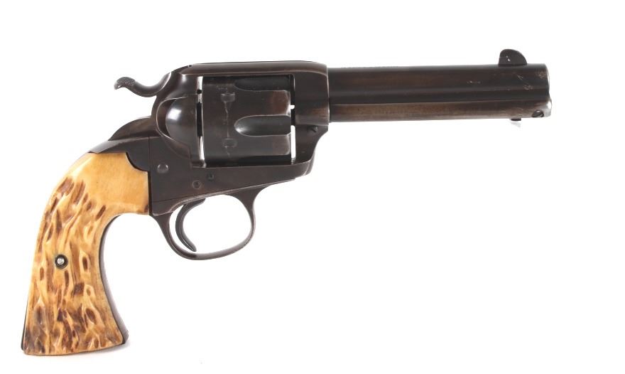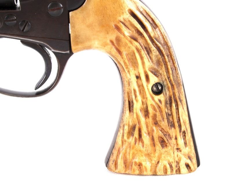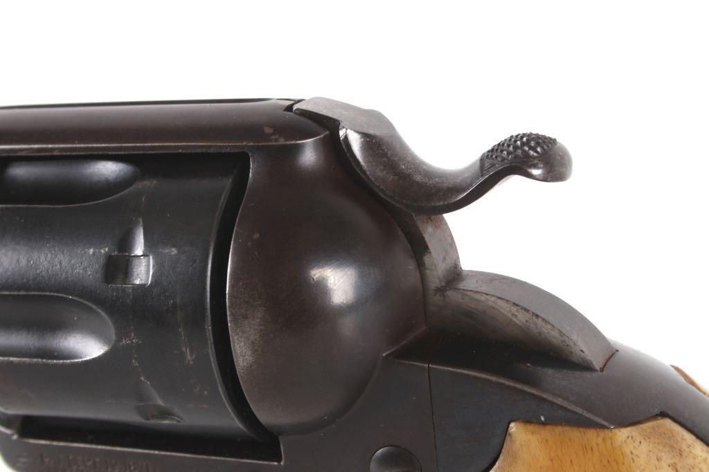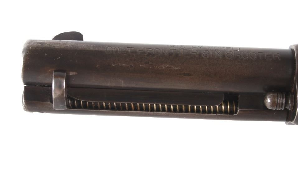 western frontier and is often seen in period photographs especially from the Southwest. An uncleaned example in this rare and desirable .44-40 caliber is a true treasure. A fine Colt in an exceptional state of preservation with a great deal of blue! The period stag grips also add to the attractive appearance of this Frontier Bisley! The revolver weighs 2lbs. 8oz. Serial Number: 254846. This firearm qualifies as a Curio & Relic firearm, and requires FFL Transfer or NICS Background Check.*