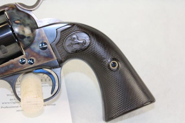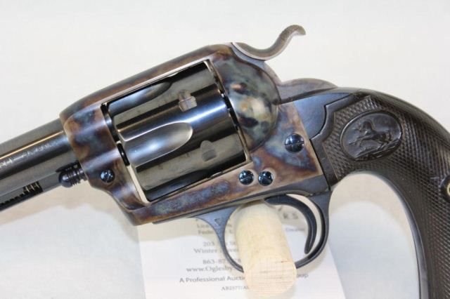 5.5" barrel. This 1912 Bisley Revolver has been professionally restored by Turnbull Restorations. All bluing and case coloring is as original. The grips show wear from original use & carry, yet the cylinder has not been turned or scored since re-assembly. You're not likely to find a finer example of a Colt Bisley anywhere.