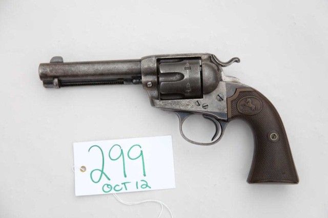 Colt Bisley Model Single Action revolver, .38 WCF cal., 4-3/4” barrel, blue and case hardened finish, checkered black hard rubber grips, #181463. This gun is in overall very good condition showing strong traces oforiginal blue finish in protected areas and traces of case colors in protected areas of the frame; good bore, crisp action, sharp markings, very good grips with left grip shaded to brown from sunlight exposure; allmatching visible numbers. The gun is accompanied by a Colt factory letter confirming features and indicating shipment to Colt’s San Francisco Agency on December 8, 1898, four guns in shipment. Est.:$1,000-$2,000.