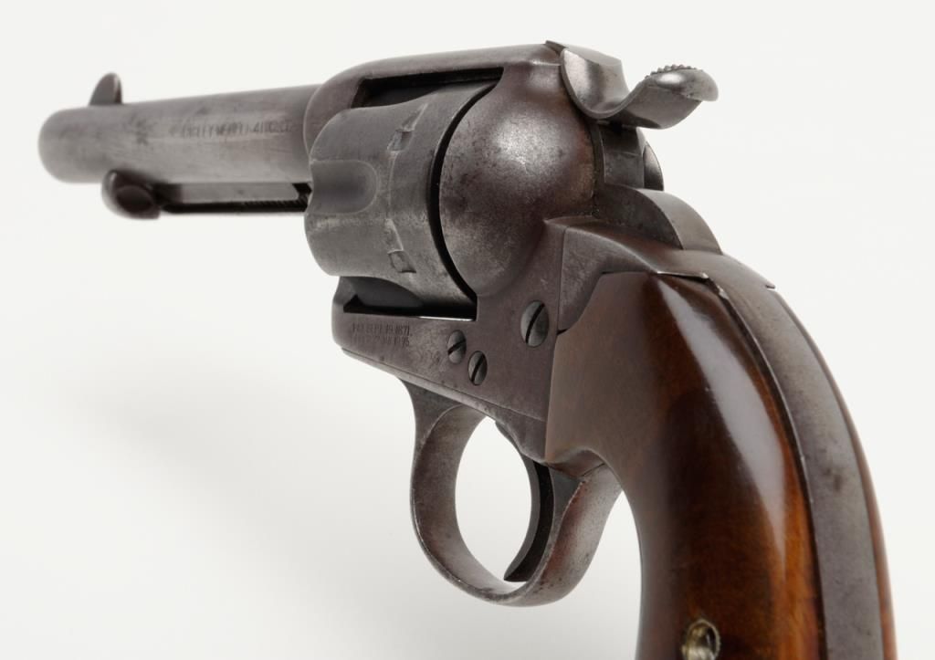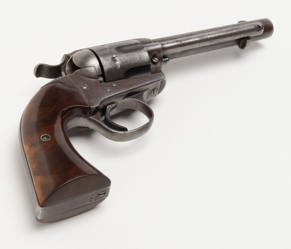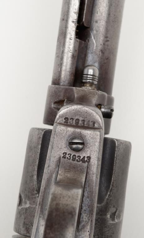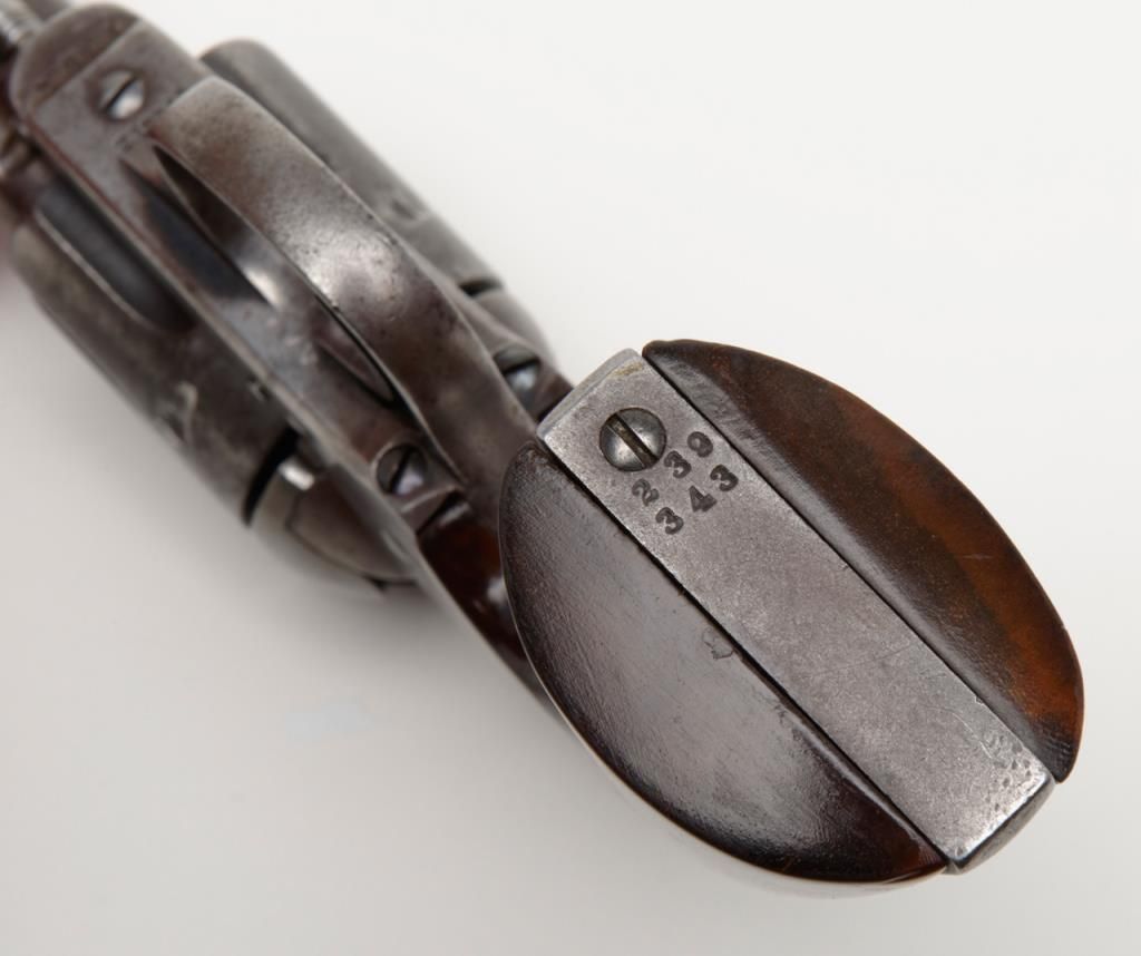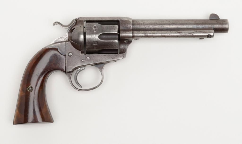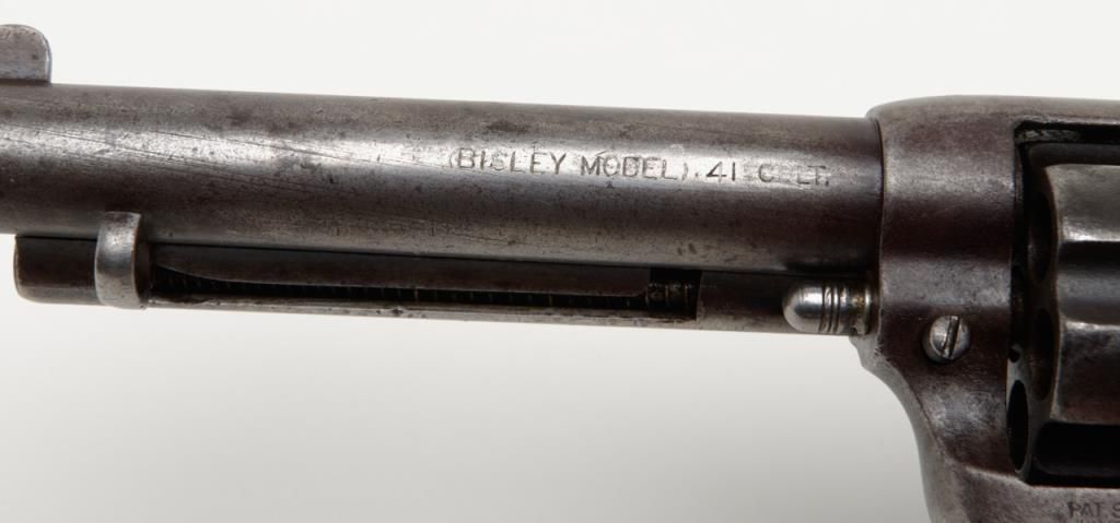 Colt Bisley Single Action revolver, .41 Colt cal., 5-1/2” barrel, blue finish, replaced smooth hardwood grips, #239343 in overall very good condition showing a dark patina, scattered spots of erosion, good bore, crisp action, good markings and very good modern grips. (C&R). Est.: $1,250-$2,500