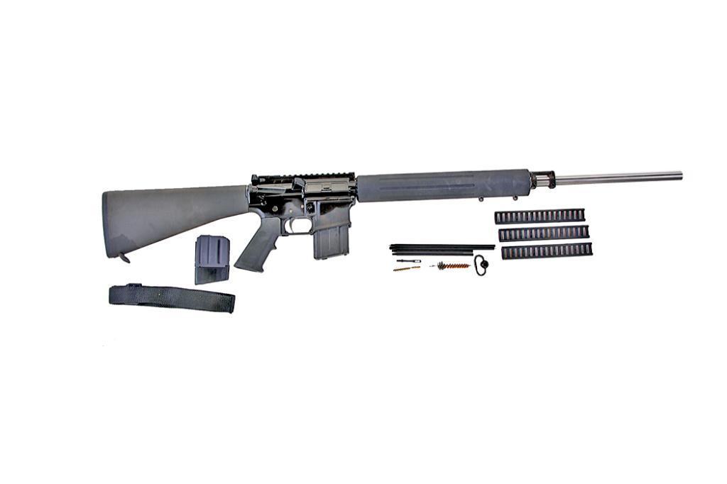 Colt CAR-A3 H-BAR Elite .223 SN:BK014051 Semi-auto rifle designed for match target work. Matte black finish, fixed composite stock and pistol grip with sling swivels. Integrated accessory rail with no sights. 24" free floating stainless barrel with aSemi-auto rifle designed for match target work. Matte black finish, fixed composite stock and pistol grip with sling swivels. Integrated accessory rail with no sights. 24" free floating stainless barrel with aluminum round hand guardwith twin swivel studs. Condition: Like new in original box with cleaning equipment sling and two magazines. NOT CALIFORNIA LEGAL.