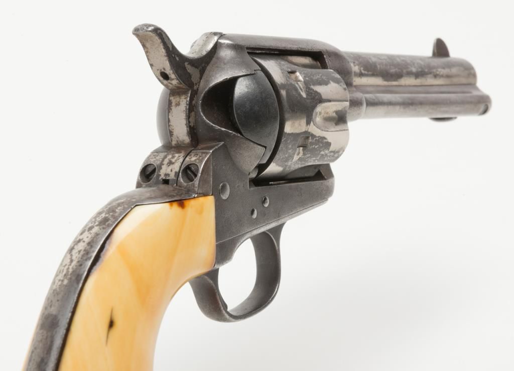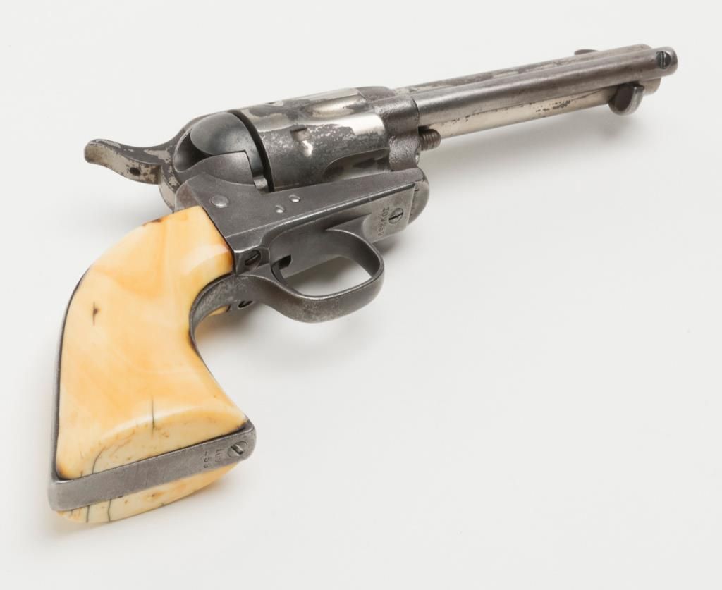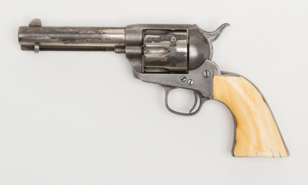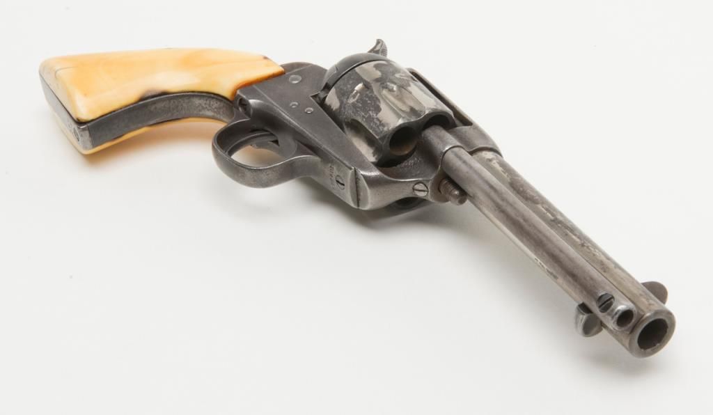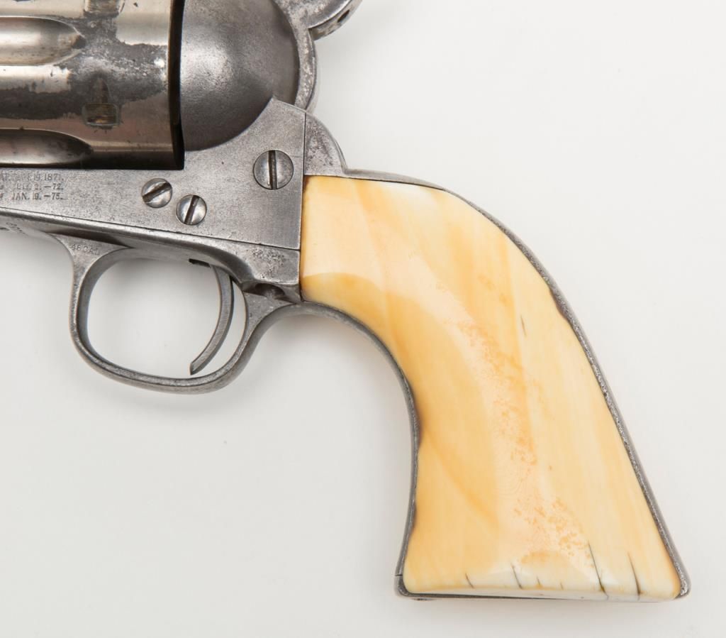 Colt Civilian Model SAA revolver, .45 cal., 4-3/4” barrel, nickel finish, ivory grips, #109259 acc