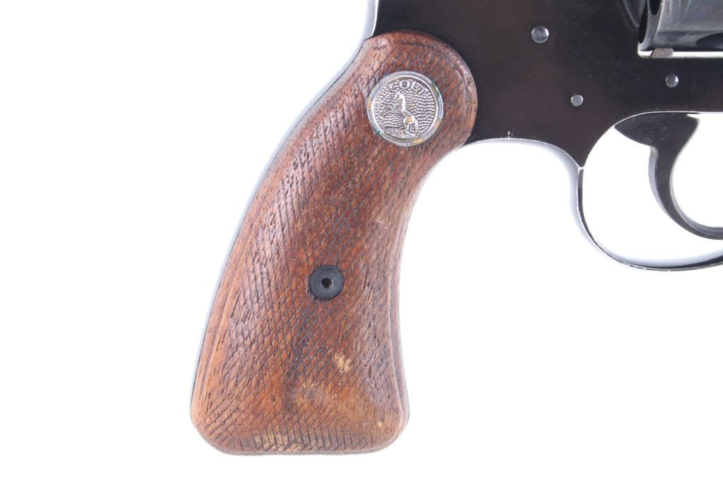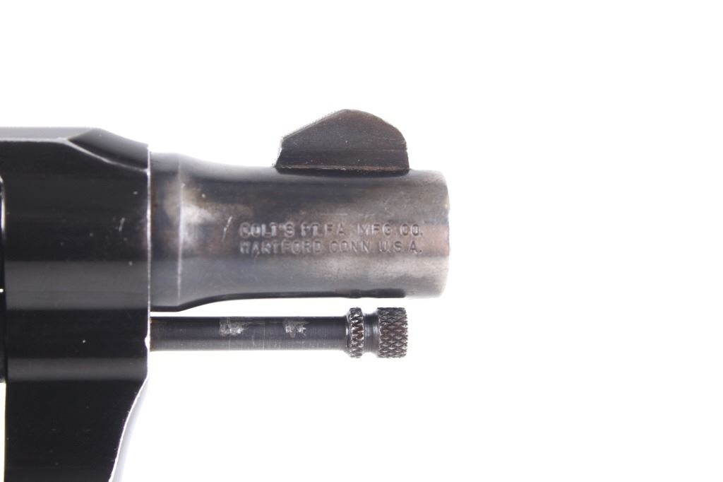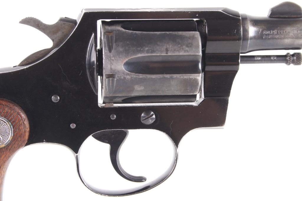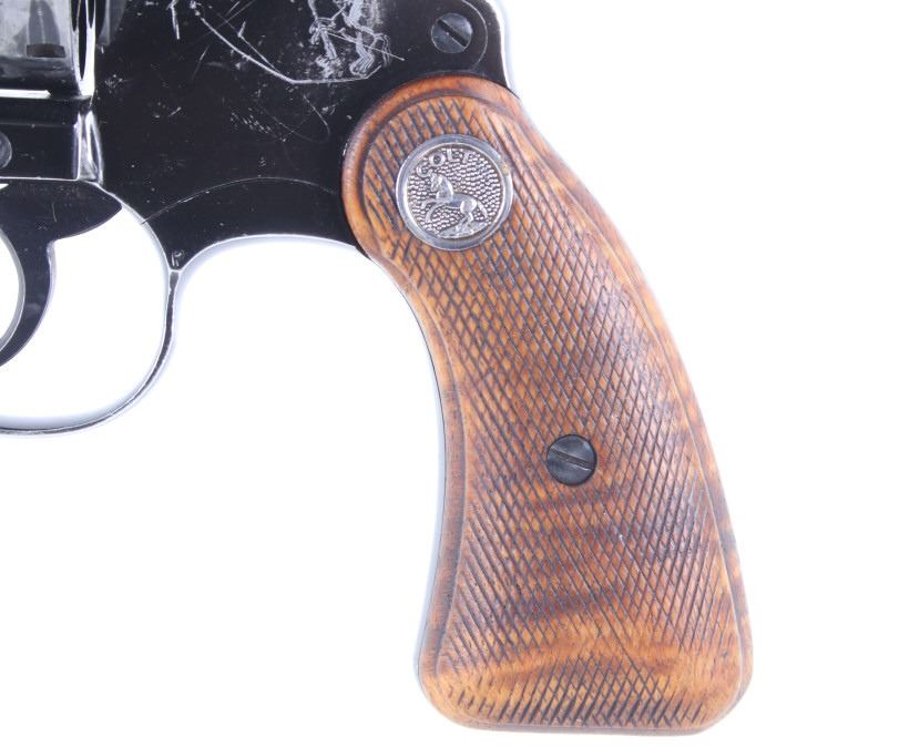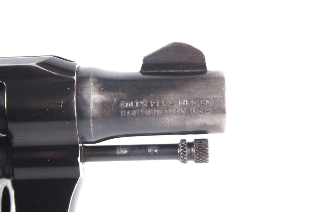 Featured in this lot we have a Colt model Cobra double action snub nosed revolver chambered in .38 special. The revolver was manufactured in 1961 by Colt. The revolver displays a 2" long round barrel, six shot cylinder, checkered wood grips, fixed sights, and double action trigger. The barrel is marked across the left side reading "COBRA .38 SPECIAL CTG." with the right reading "COLTS PT. F.A. MFG. CO. HARTFORD CONN. U.S.A.". Mechanically the revolver shows a smooth cylinder rotation and crisp trigger. The grips display worn checkered design with metal colt medallions at the top of the grips with the rearing Colt logo with "COLT" across the top. The piece shows good condition overall with some wear across the blue'd finish and some handling wear across the grips and frame. The revolver weighs 14oz. Serial Number: 116476. This firearm qualifies as a Curio & Relic firearm, and requires FFL Transfer or NICS Background Check.