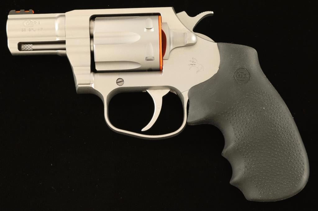 Modern production stainless steel double action snub-nosed revolver chambered in .38 Special and rated for +P ammunition. Features a matte finish, 2" ribbed barrel with full underlug, orange fiber optic front sight, square notched rear sight, fluted six-shot cylinder, smooth trigger, serrated hammer spur, and one-piece Hogue pebbled black rubber overmolded finger groove grip with Colt insignias. Includes the factory hard case with documents, hang tag and lock. Revolver exhibits little to no visible wear. Action is smooth with solid lock-up, bore is good and rubber grips are fine. Condition is like new in box. ***Modern Firearm***