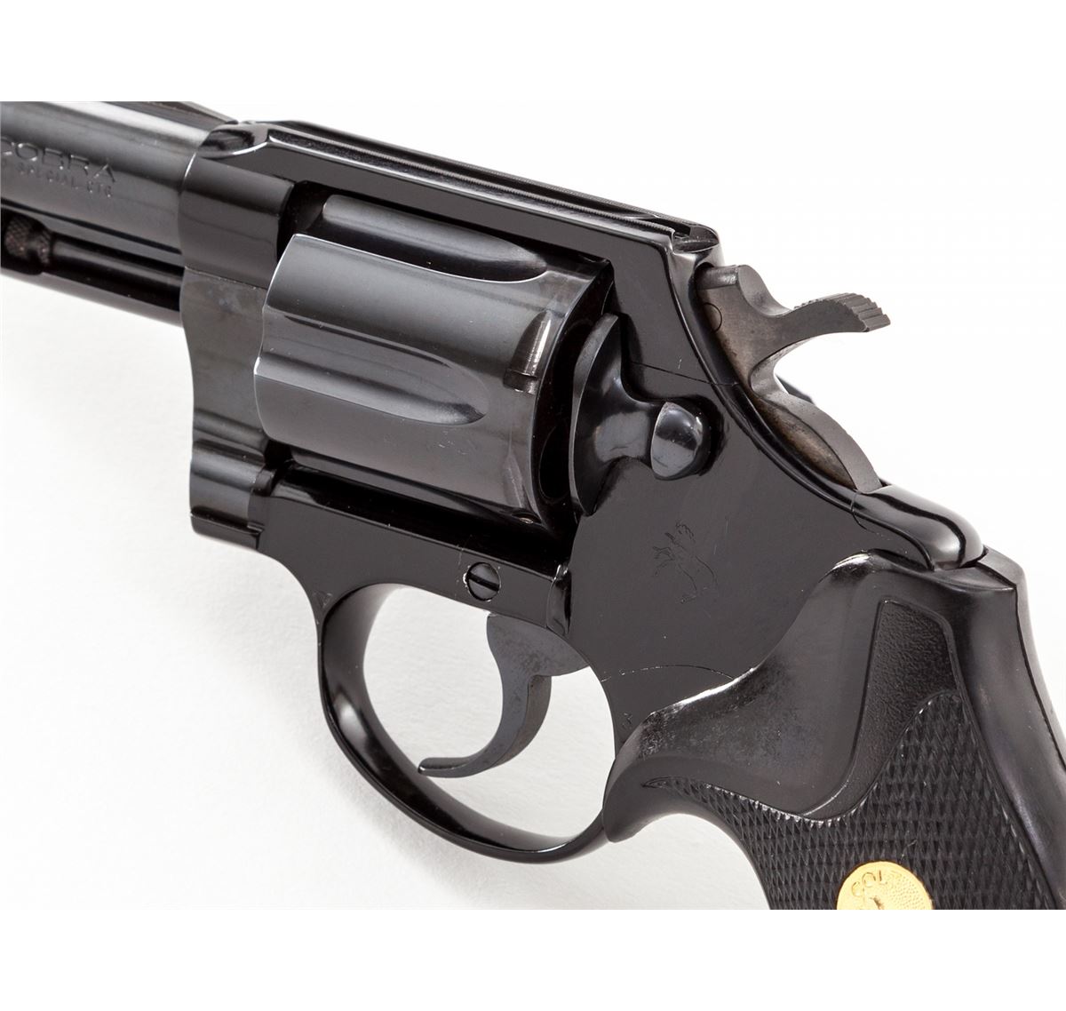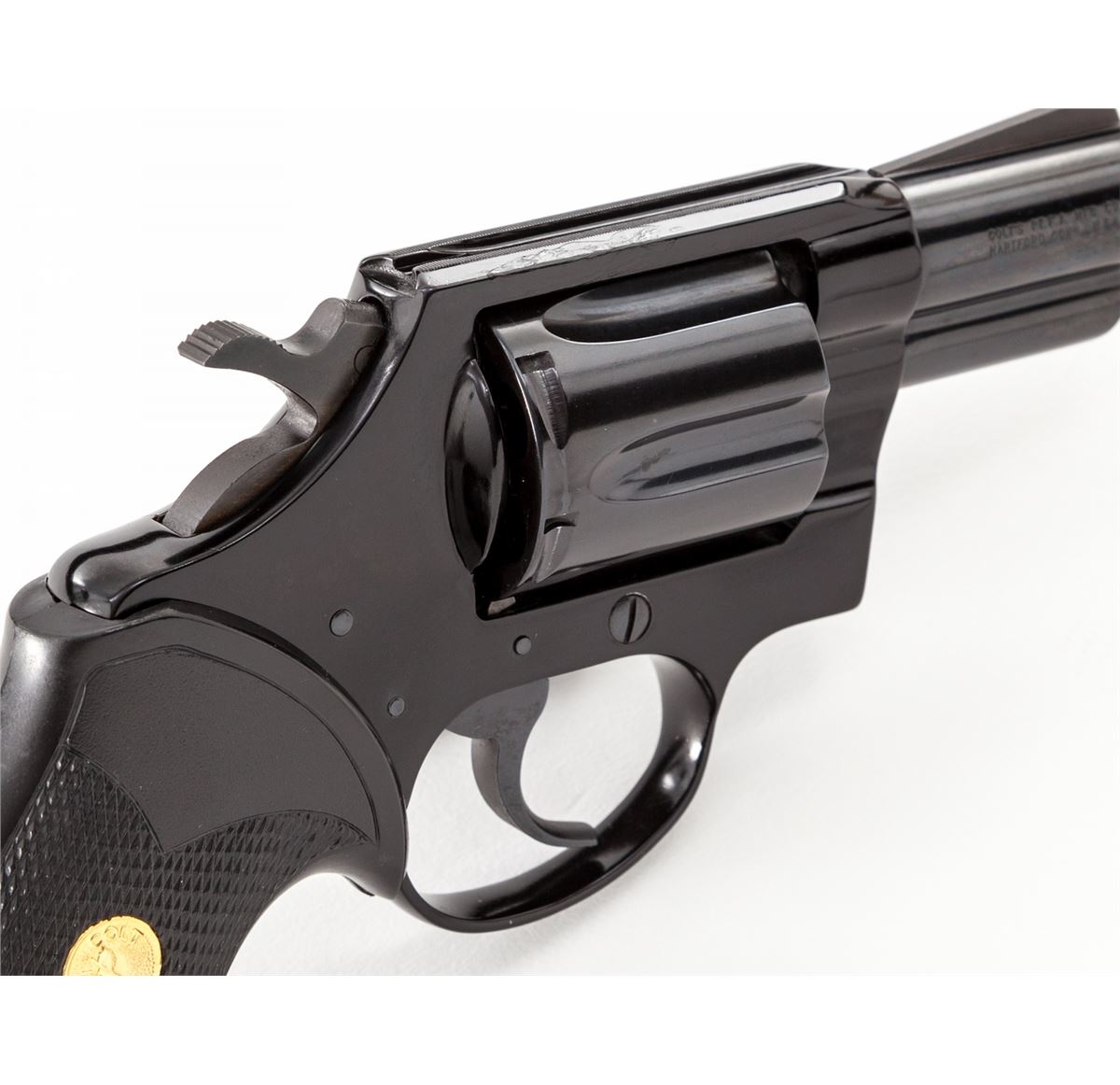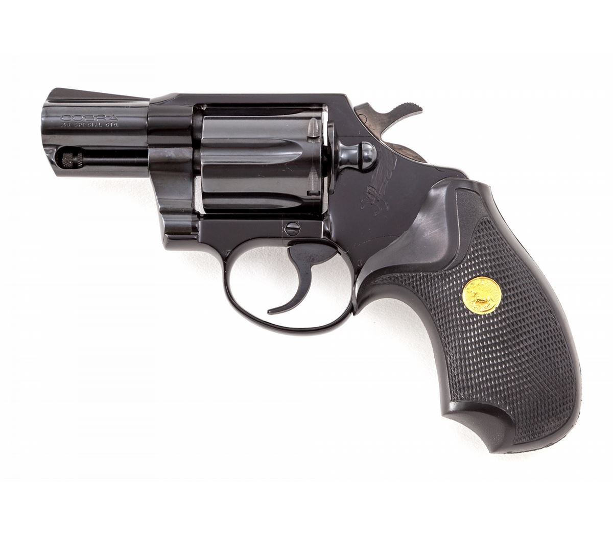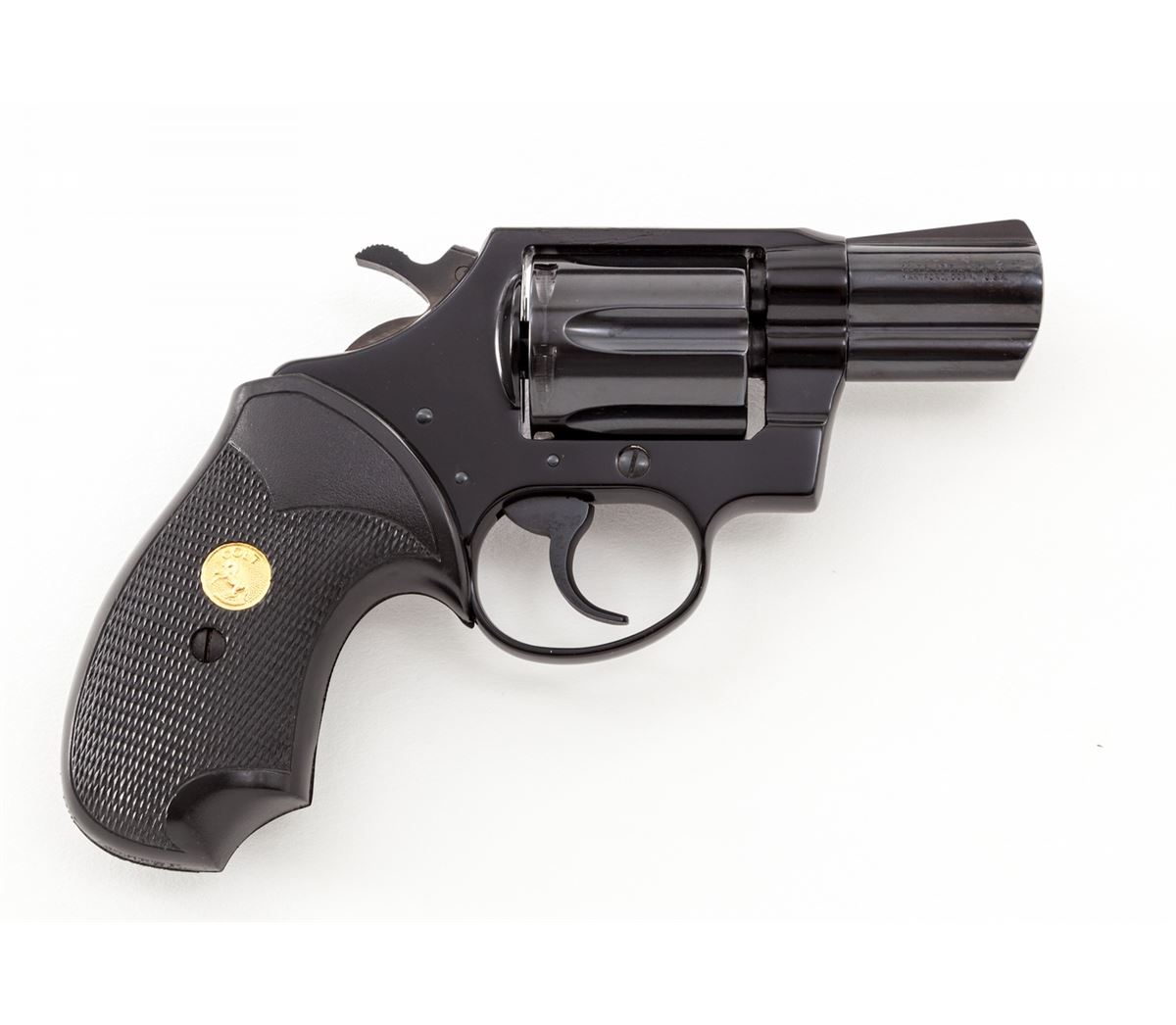 Colt Cobra Double Action Revolver, #C74946, .38 Spec. cal., 2'' barrel, blue finish, Pachmayr rubber grips with gold medallions. Condition is excellent, with 1'' area of touchup to finish on sideplate. Est.: $400-$600. (Modern)
