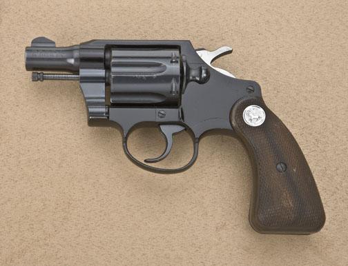 Colt Cobra Model DA lightweight alloy frame revolver, .38 Special cal., 2” barrel, black finish, checkered Colt medallion wood grips, round butt, #51897. This gun is in overall fine condition showing the majority of itsoriginal finish with a couple of spots of pitting on one cylinder flute but otherwise sharp; very good to fine bore, crisp action, very good markings and grips. Est.: $175-$350.