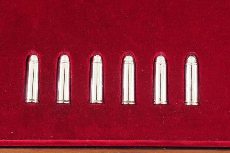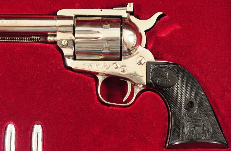 Ned Buntline Commemorative, Nickel Plated, Cased with silver bullets, 45 Cal. Serial #NB2955