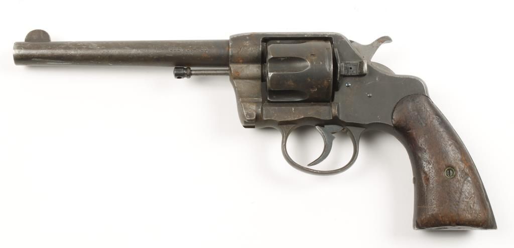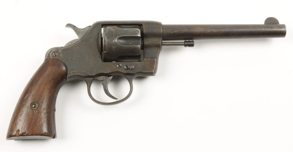U.S. made with British proofs from the reign of Queen Victoria. Mismatched serial numbers on the frame, cylinder and cylinder latch. 6" barrel. Shiny bore with good rifling for 5" and then smoothbore for last inch. Cylinder is not tight. Wood grips are worn and rounded with chips and dings. Steel finish is dark and worn with dings, scratches and edge wear. The trigger and hammer have vestiges of nitre bluing. Condition is fair to good. *MUST BE REGISTERED*