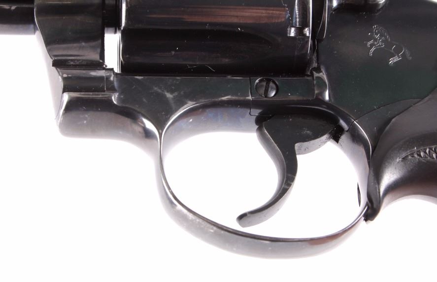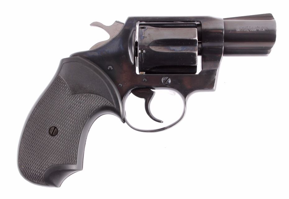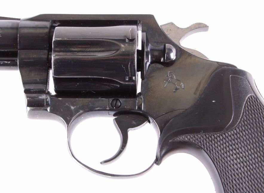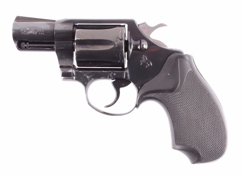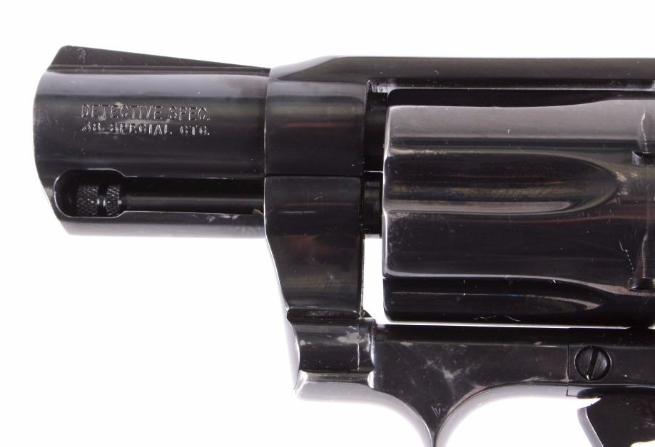 This is a Colt Detective Special double action revolver chambered in the .38 Special caliber. The revolver features a blued 2" barrel, frame and six shot cylinder with Packmayr Presnetation/Compac rubber grips. The barrel is marked "Detective Spec. .38 Special CTG" and "Colt's Pt. F.A. Mfg. Co. Hartford, Conn. U.S.A.". The Colt revolver is in good condition with some minor holster wear. Serial number is HA0557. This is a modern manufactured handgun and requires an FFL or NICS background check for transfer.