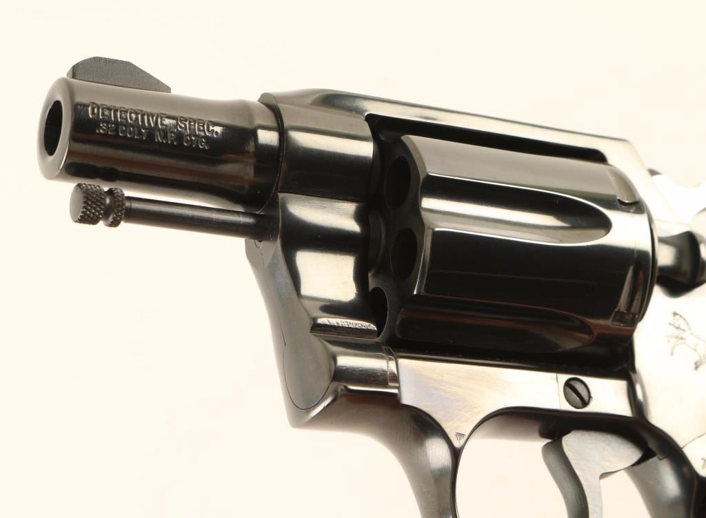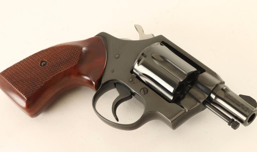 '2nd Issue' Snub-nosed double action revolver chambered in .38 Special, circa 1977. Features a blued finish, 2" barrel, patridge front sight, square notched rear sight, non-shrouded ejector rod, long fluted six-shot cylinder, smooth trigger, serrated hammer spur, and two-piece checkered walnut grips. Revolver exhibits approximately 99% of it's original blued finish showing little wear and a very faint drag line on the cylinder. Action is smooth with solid lock-up, bore is pristine, and wood grips are fine. Condition is near new. ***C&R Firearm*** ***Modern Firearm***