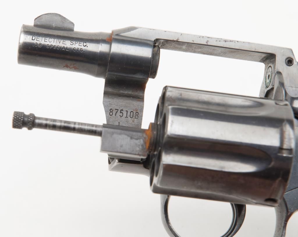 Colt Detective Special DA revolver, .38 Special cal., 2” barrel, #875108 in very good condition, 80%-90%, manufactured in the 1950’s; holster wear/normal use. (C&R/PPT). Est.: $350-$700.