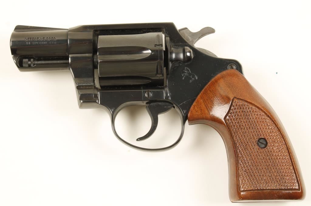 Blued double-action 6-shot revolver with a 2" barrel with full underlug. Finish has a few small scratches and tiny areas of exposed metal at the muzzle, on the cylinder and on the topstrap above forcing cone. Bore is mirror bright with sharp rifling and the chambers are shiny. Function is smooth and lock-up is tight. Walnut grips with checkered panels have small dings and scratches. Condition is very good. *Modern Firearm*