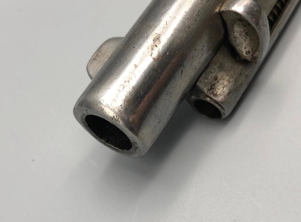 Offered for sale in this lot is a model 1878 Colt Double Action Frontier Six Shooter. This pistol is in poor condition and seems to be working in double action but the hammer does not stay cocked back when used in single action. Cylinder does not always cycle properly. It has the wrong grips. Barrel address and serial numbers are very hard to read from being worn down. The serial number is 11??5, putting it in the early 1880s range. 278 is marked on both the loading gate and under the right grip. It appears to be a .44 cal.. A good project gun. MAKER: Colt APPROX AGE: 1880s. SIZE: Barrel length 5-1/2 inches. CONDITION: Poor for its age, wear expected. Please look closely at the pictures as they are an important part of our description and are hereby incorporated into the description, specifically with regards to condition. SHIPPING: There will be a $15 handling / packaging fee for shipping this lot. The actual cost of postage will be added on top of that. BUY IT NOW: If you would like to buy this item now, without waiting for the auction day to bid on it, we do offer this option (which is available up to 48 hours before the actual auction starts). The “Buy it Now” price is the high estimate of this lot (plus applicable fees and the Buyer's premium is discounted to 10% when using the Buy it Now option). If you would like to exercise this option, you must contact us by email (or phone as long as you talk to someone live). Reference this lot number and your intention to "Buy it Now." *****ANTIQUE - This firearm DOES NOT require an FFL Transfer*****