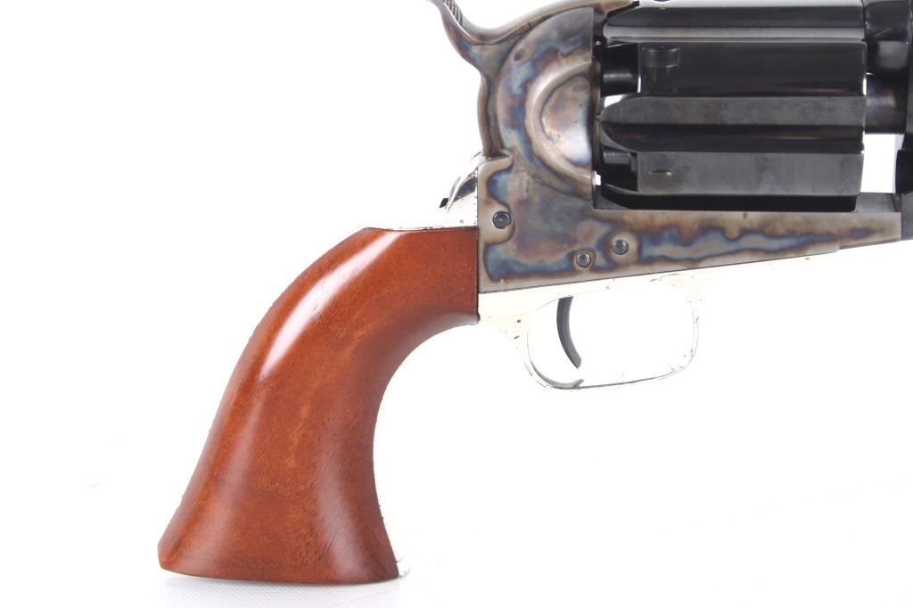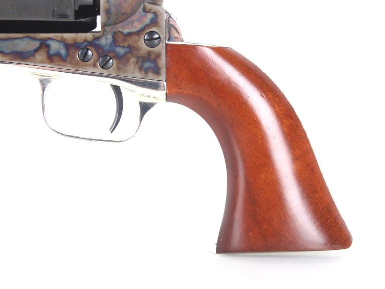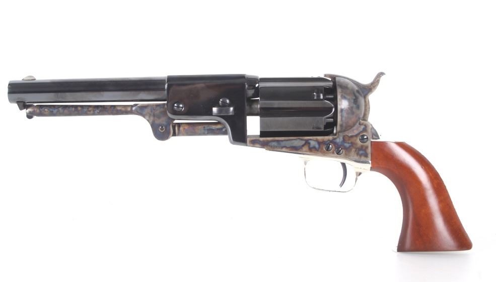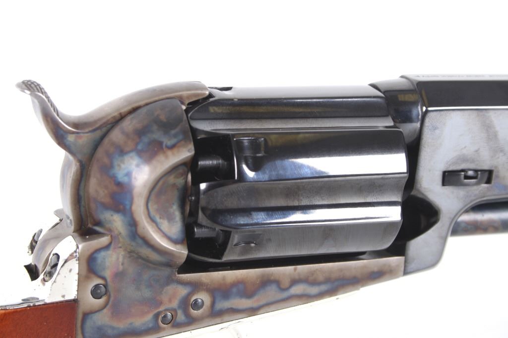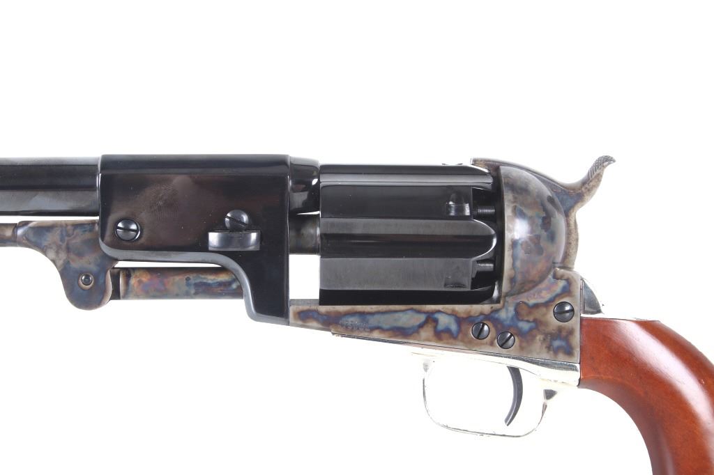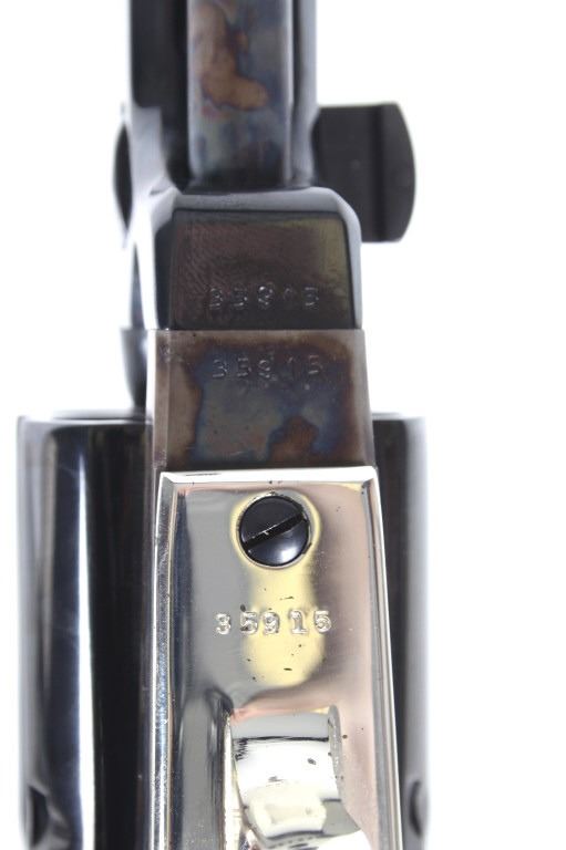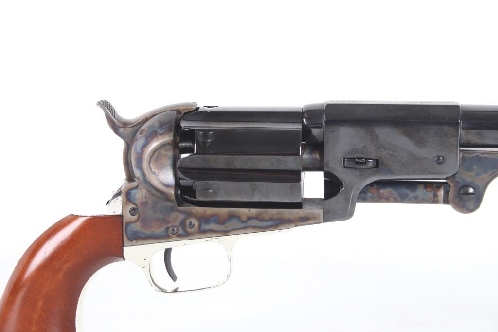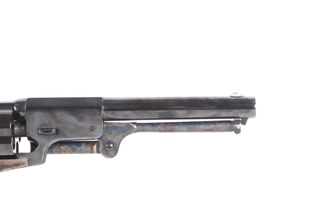 Featured in this lot is a Colt Dragoon 3rd Model percussion cap revolver chambered in .44 percussion with its original box. The revolver displays a 7 1/2" long round barrel, fluted six shot cylinder, walnut grips, and blue'd and case hardened finish. This revolver is in the shape of the third model with a serial number of 35915. The pistol is in excellent condition and is possibly a re-make. The top of the barrel is marked "ADDRESS SAML COLT NEW-YORK CITY" with the side of the frame reading "COLT'S PATENT". The revolver comes with its original sales and display box with papers. The revolver shows like new condition with a very tight cylinder and working hammer. Serial Number: 35915. This firearm qualifies as an antique, and does not require FFL Transfer or NICS Background Check.*