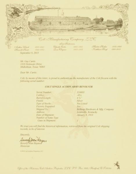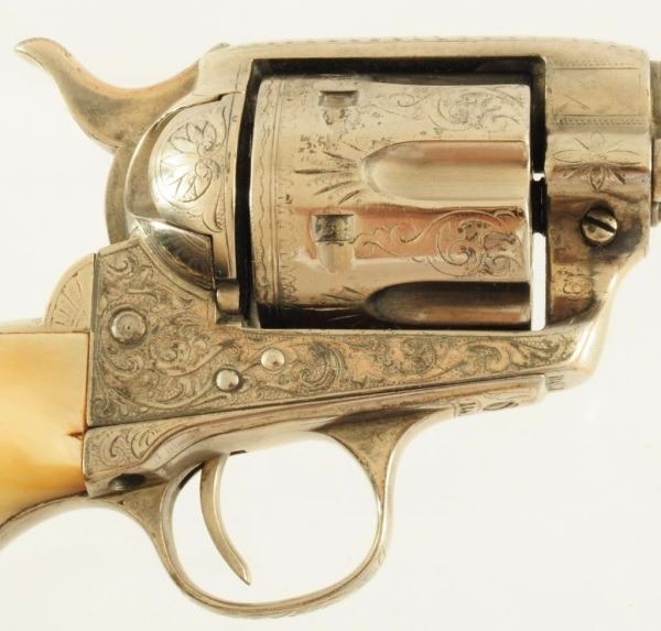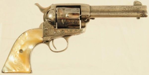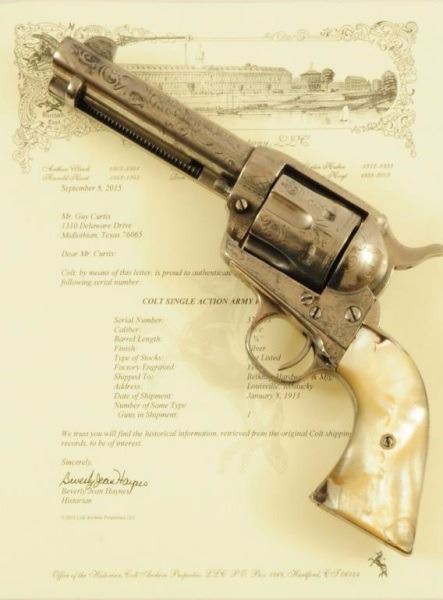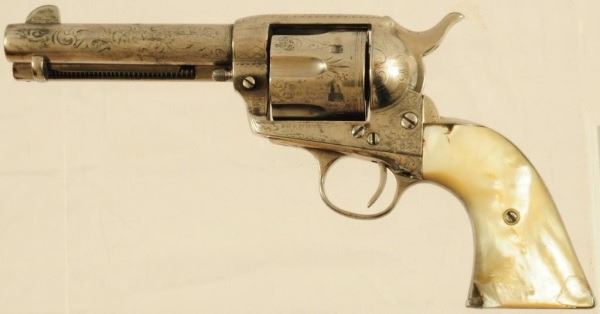 * 4-3/4" Barrel. Factory engraved with pearl grips. Factory silver finish with factory letter.