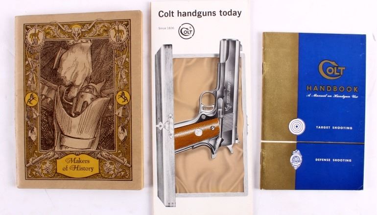This is a collection of Colt Firearms catalogs. They are from the 1950's to 1970's and includes a reprint of the 1926 "Makers of History" book. The catalogs are in good condition. They measure 8.5" x 11".