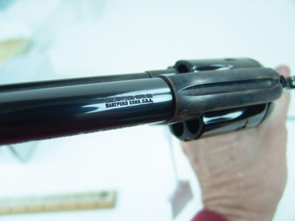 Fine, six-shot, .45 caliber revolver with 4-3/4" barrel, blued cylinder and barrel, case hardened frame, and with black, hard rubber "eagle" grips. Excellent condition, new in original box. S/N 503759A *FFLMid/Late1900s4-3/4" barrel
