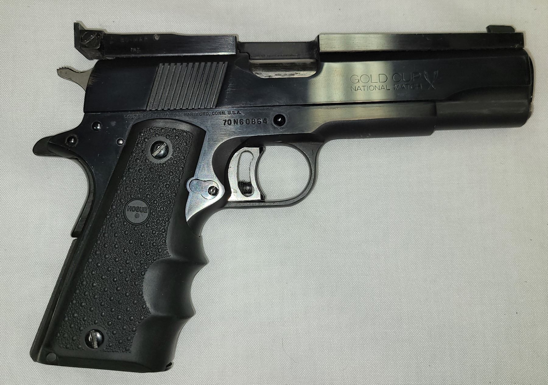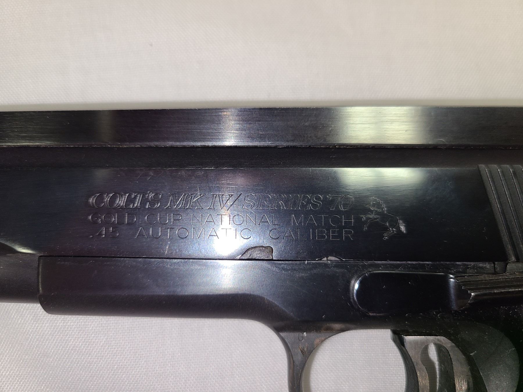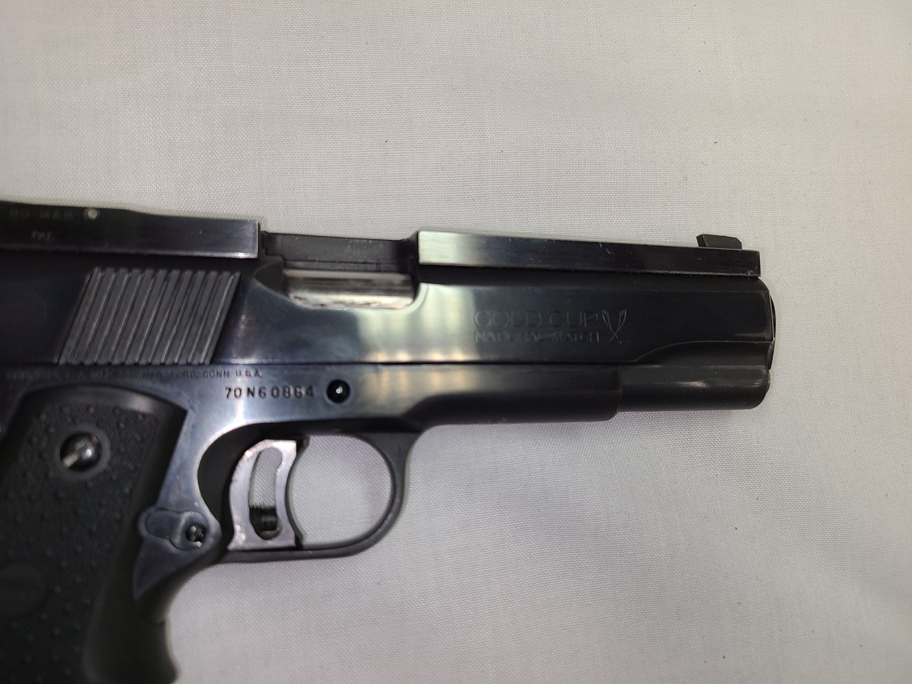 Colt Gold Cup National Match MK1V in 45 ACP Auto Condition 9 / 10 Very Good. Very clean gun no damage at all. Single Shot 410 made by Winchester. This handgun comes with a Bomar Top Rib Accuracy Tuner. Trigger is an upgraded Clark Trigger. Houge competition grips are installed. Comes with original cardboard box. ....... RESTRICTED LICENCE REQUIRED