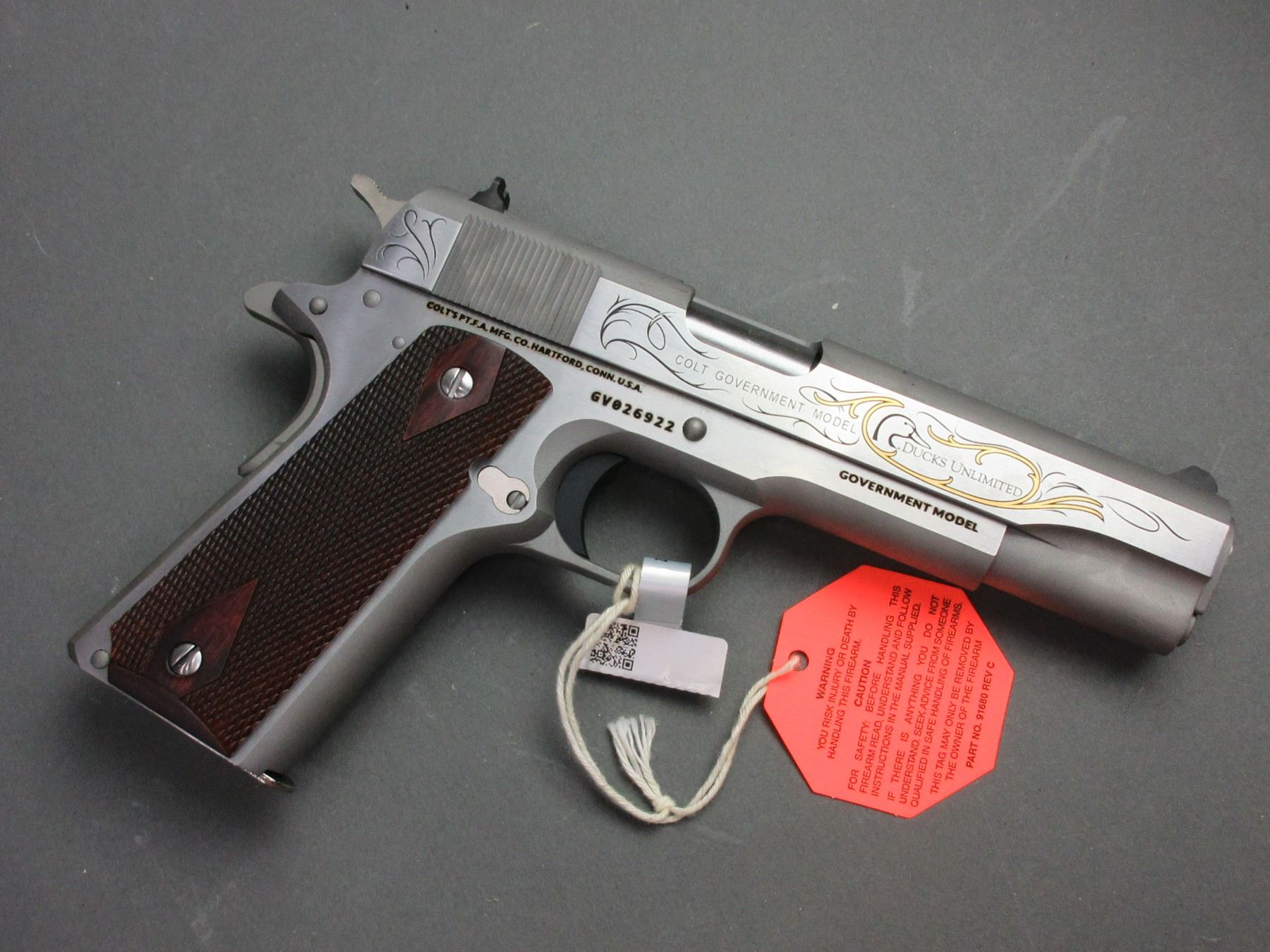 Colt Government Model Ducks Unlimited Semi-Automatic Stainless Pistol- .45 Auto- 5" Barrel- Checkered Grips- Hard Case- Unfired- #GV026922