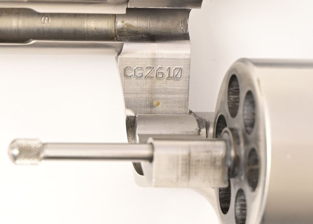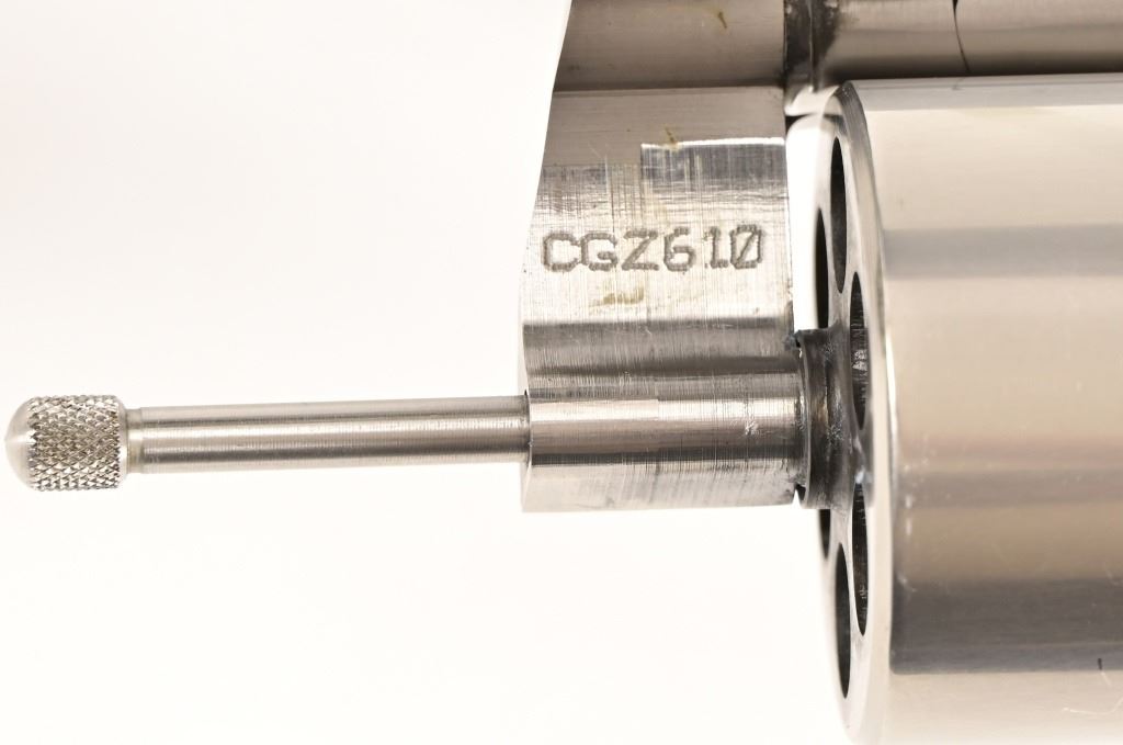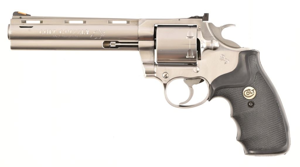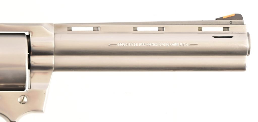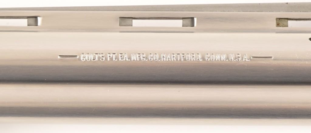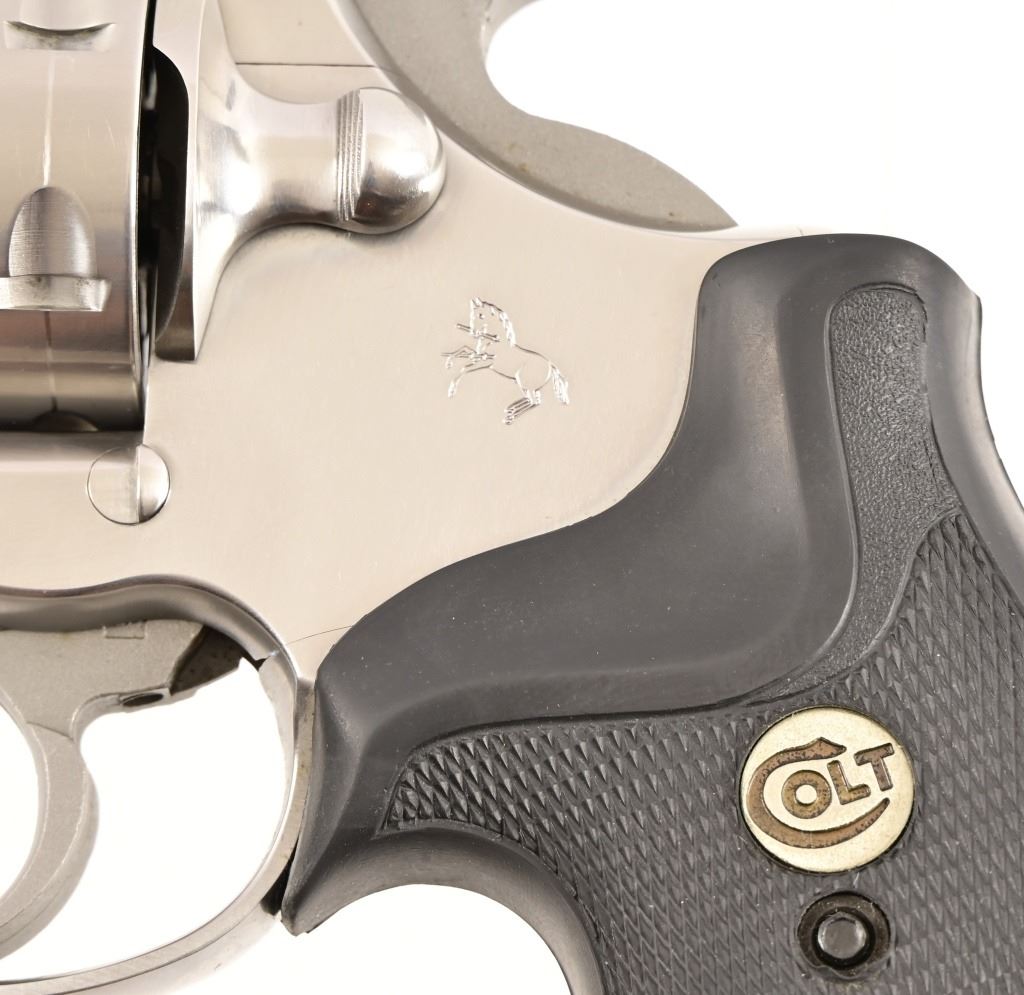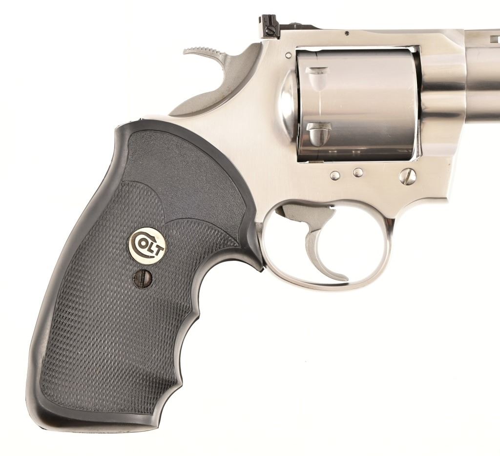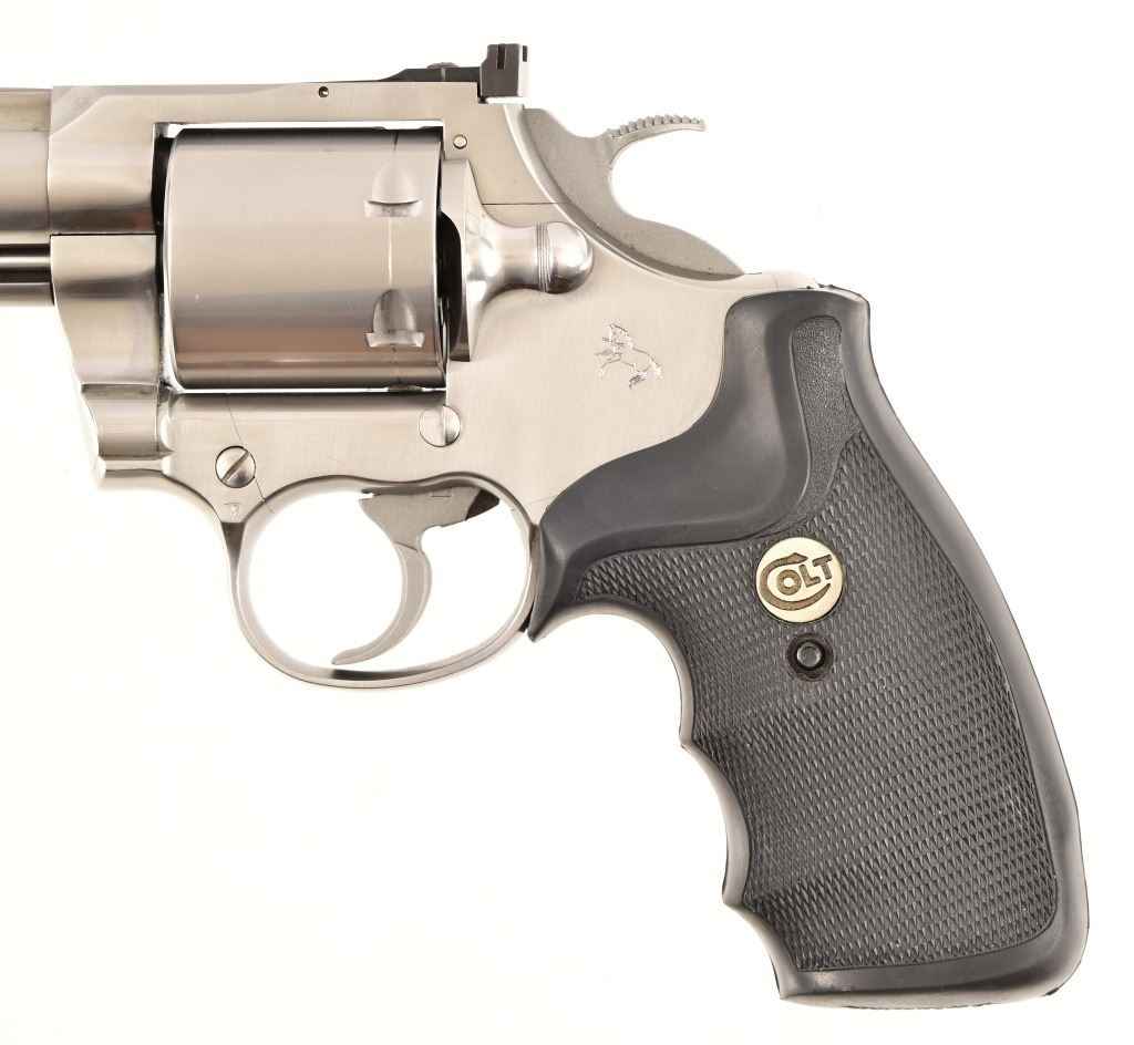 S/N CGZ610. Stainless finish, 6" vent ribbed barrel, Colt emblem checkered rubber grips. Modern