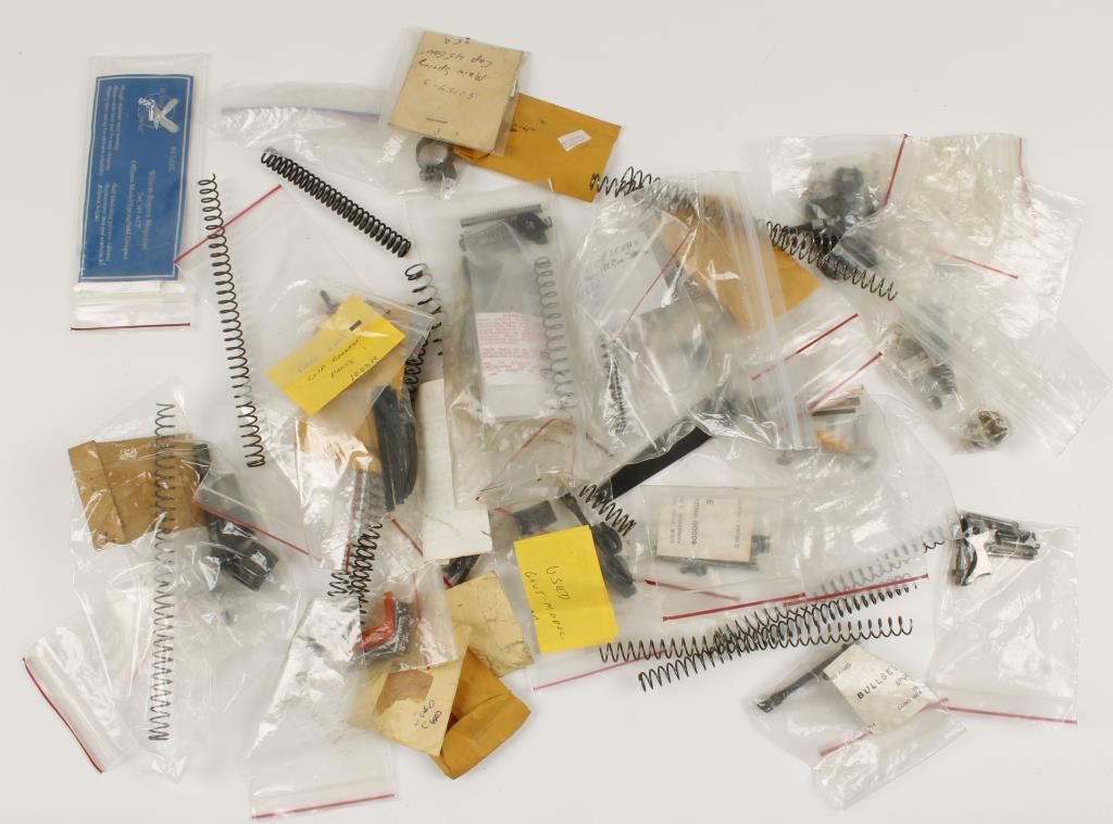 Includes 1911 & 1911A1 grips, recoil springs, hammers, triggers, safeties, grip screws, grip studs, and misc parts; SAA NF and Scout grips for Eagle SAA, Eagle NF, faux pearl SAA, aftermarket, and Bisley; and gunsmithing parts of SAA and double actions, and much, much, more.