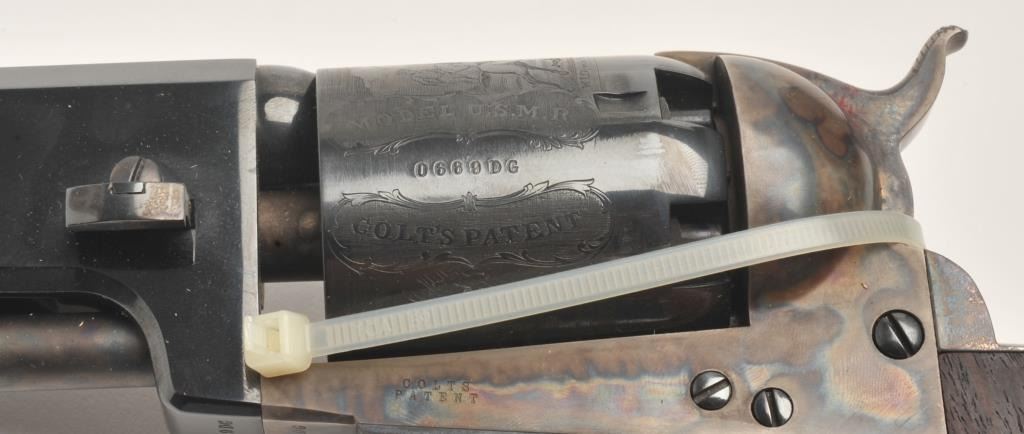 Colt Heritage set of 3 guns in wood casing with “Armsmear” deluxe edition hardback book; Guns include: 1. A Colt Bicentennial Python DA revolver, .357 Magnum caliber, 6” ventilated rib barrel, blued finish, smoothwood combat grips with American spread eagle insert on left grip, S/N 0669PY, in like new condition; 2. A Colt Bicentennial SAA revolver, .45 caliber, 7.5” barrel, blued and case hardened finish, smooth wood grips with American spread eagle insert on left grip, S/N 0669PM, in like new condition and; 3. A Colt Bicentennial New Black Powder Third Model Dragoon percussion revolver, .44 caliber, 7.5” barrel, blued and case hardened finish, smooth wood grips with American spread eagle insert on left grip, S/N 0669DG, in like new condition with accessories. A desirable Colt Commemorative set in a beautiful wood drawer casing.(Modern/PPT). Est.: $3,500-$7,000.