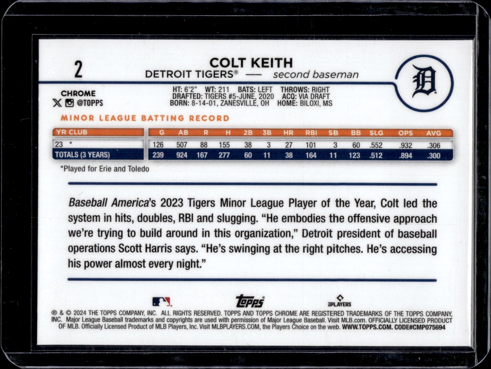 Colt Keith RC 2024 Topps Chrome #2