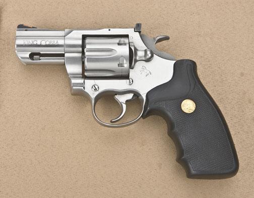 Colt King Cobra Model DA stainless steel revolver, .357 Magnum cal., 2-1/2” barrel, finger groove checkered Colt medallion hard rubber grips, #2KC844 in original Colt factory maroon cardboard box with insert andend label numbered to this gun. The revolver is in overall fine condition with a very good bore that should clean to fine, crisp action, sharp markings and fine grips. The box is in overall very good condition withsome fraying and scuffing. Est.: $350-$700.