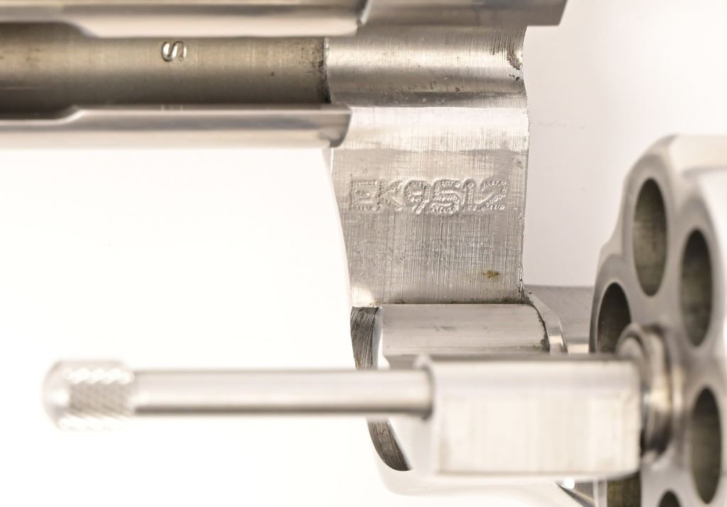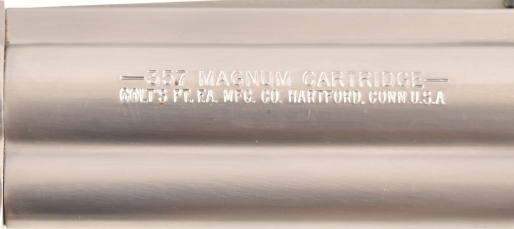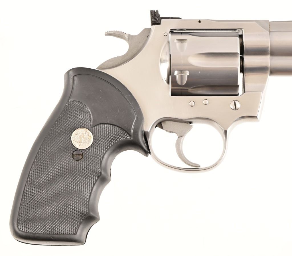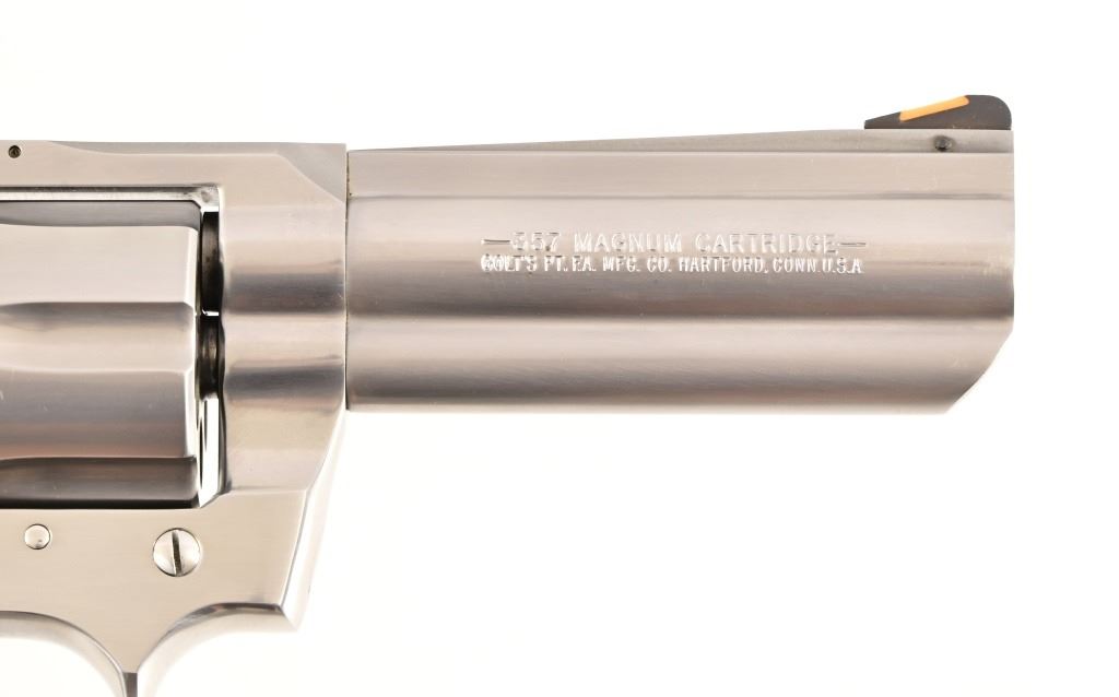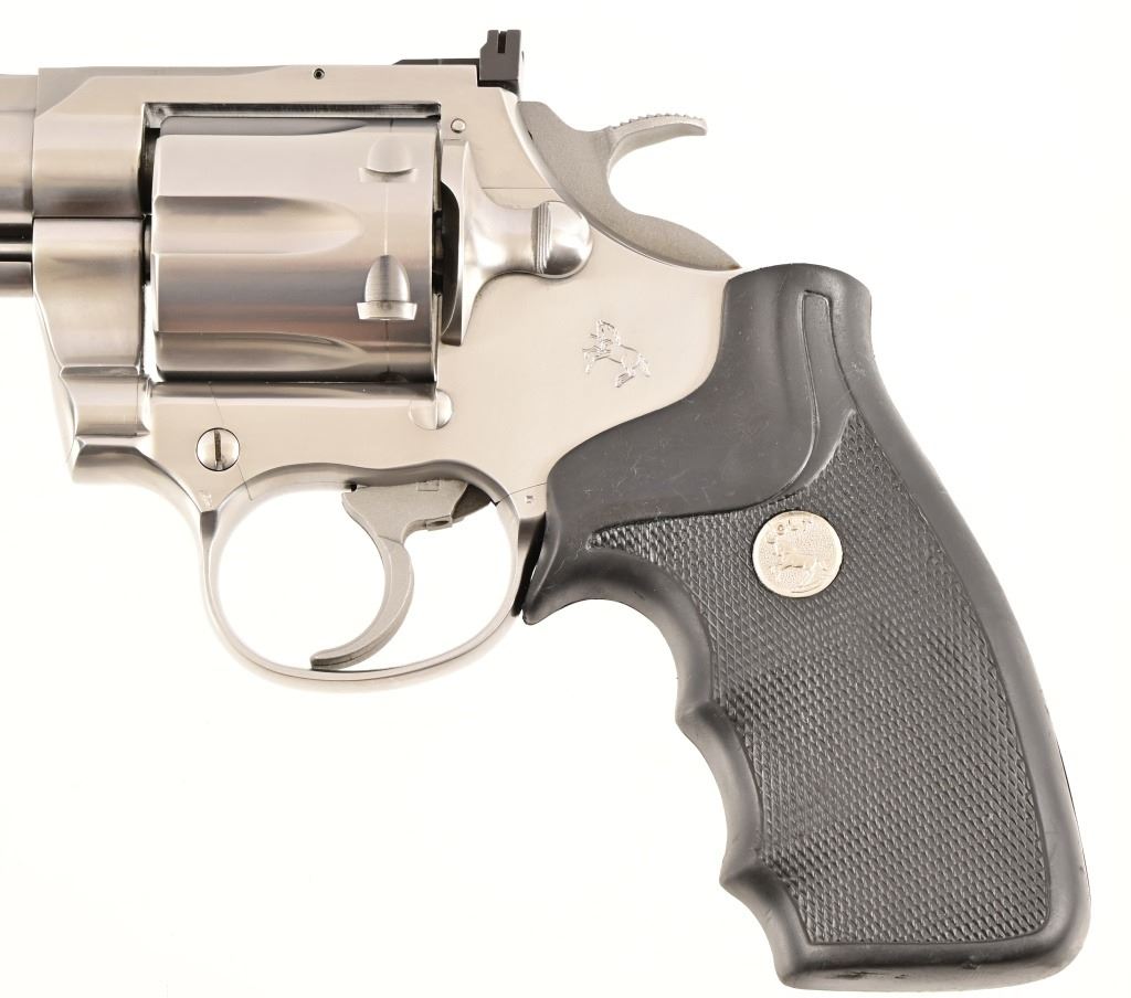 S/N EK9512. Stainless finish, 4" barrel. Rampant Colt medallion rubber grips. Modern