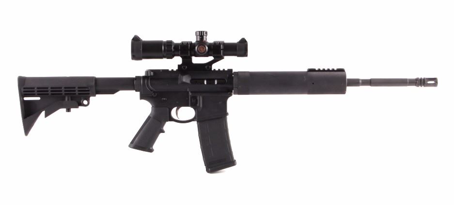 This is a Colt Light Carbine AR-15 chambered in the 5.56mm/.223 caliber with a Truglo tactical scope. The rifle features a 17 1/4" barrel, aluminum free float hand guard, 1:8 twist, 30 round PMag, adjustable stock, and a A2 flashdider. The Colt LE6900 is Colts offering in the entry level AR-15 market, competing with S&W and DPMS models. The rifle is in good condition, with little signs of use or wear. Modern rifle, FFL transfer or NICS background check required. Serial number is VLO10500.