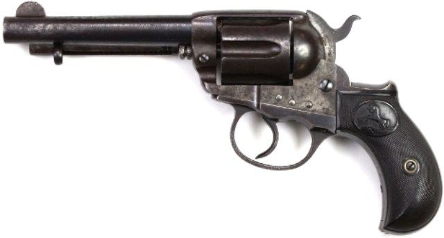 double action revolver, 4 1/2" barrel, blued finish, hard rubber checkered grips. Good functioning action with nice bore. Mfg'd 1902 Modern. Est. 750-900