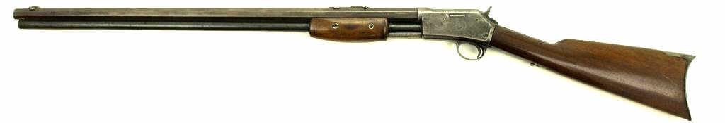 26" octagon barrel, walnut stocks. Gray to brown natural patina on barrel and frame, thinning blue on magazine tube, no cracks or repairs on stocks, lightly sanded and old clear recoat. Firm action, fair bore. Mfg'd 1898. NO FFL Required.