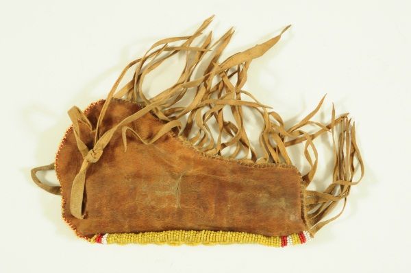 Colt Lightning in an early Indian beaded whirling log (swastika) holster. brain tanned leather.