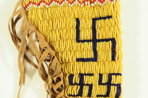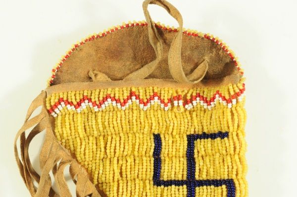 Colt Lightning in an early Indian beaded whirling log (swastika) holster. Brain tanned leather.