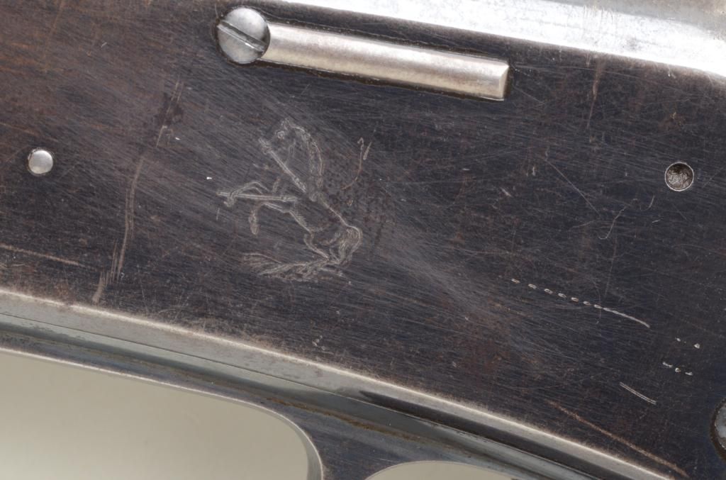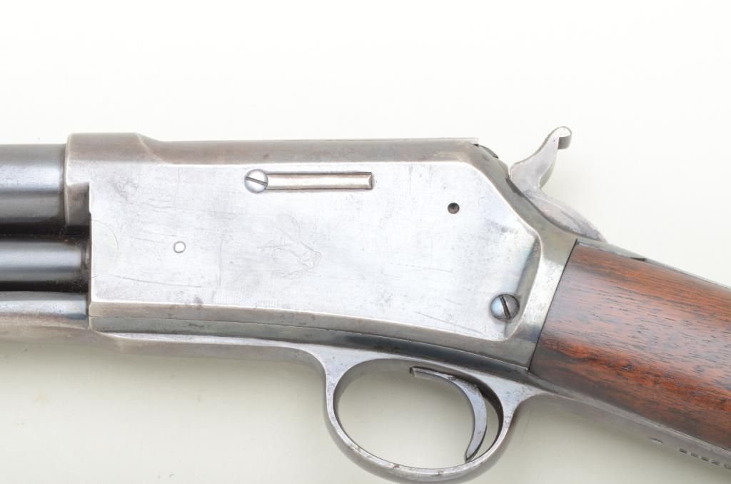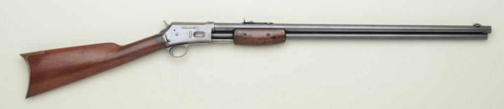 Colt Lightning magazine-fed pump action rifle, .38-40 cal., 26" round barrel, full magazine, crescent butt, plain forend, serial #88829. The rifle remains in very good+ to near fine original condition, showing 80-90%original blue overall, some drifting on the high points and edges which is mainly on the frame. The markings are sharp, the rampant Colt logo is well defined on left side of action. The stocks also are very good+ withsome minor losses at the edges, just normal aging and minor imperfections. The action is tight, the bore is very good+ and may clean to excellent. Est.: $2,500-$5,000