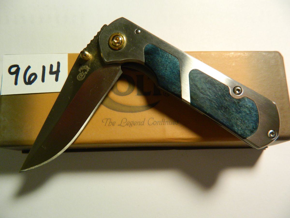 Linerlock - 3 5/8" closed. 8Cr13MOV stainless blade with thumb stud. Stainless handles with blue smooth bone front handle inlay. Stainless pocket clip.