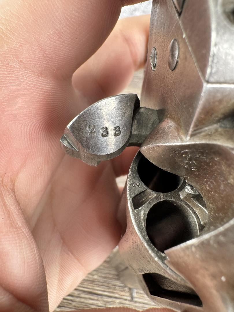 4 1/2" barrel. Mismatched serial numbers. 161450 on frame. Made in 1906. Cylinder doesn't spin when cocked or trigger pulled. FFL Transfer Required, C&R not accepted.